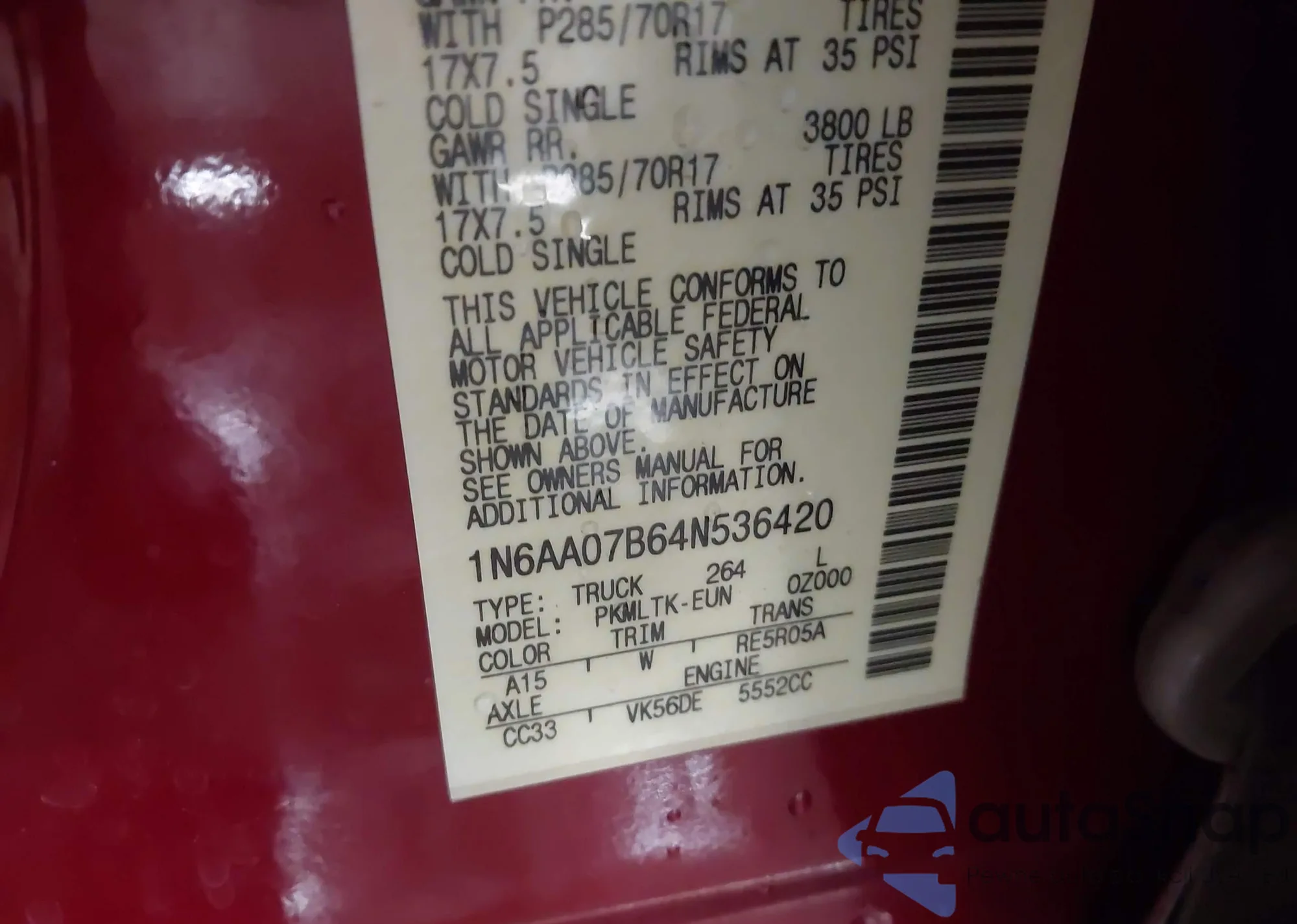 • VIN 1N6AA07B64N536420