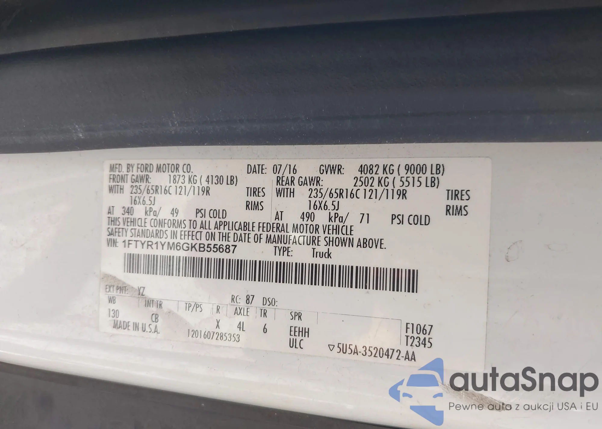 • VIN 1FTYR1YM6GKB55687
