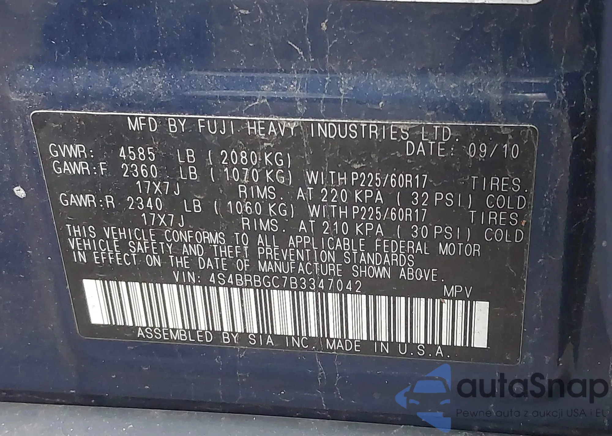 LOT: 43586551 VIN: 5GZCZ534X7S849709