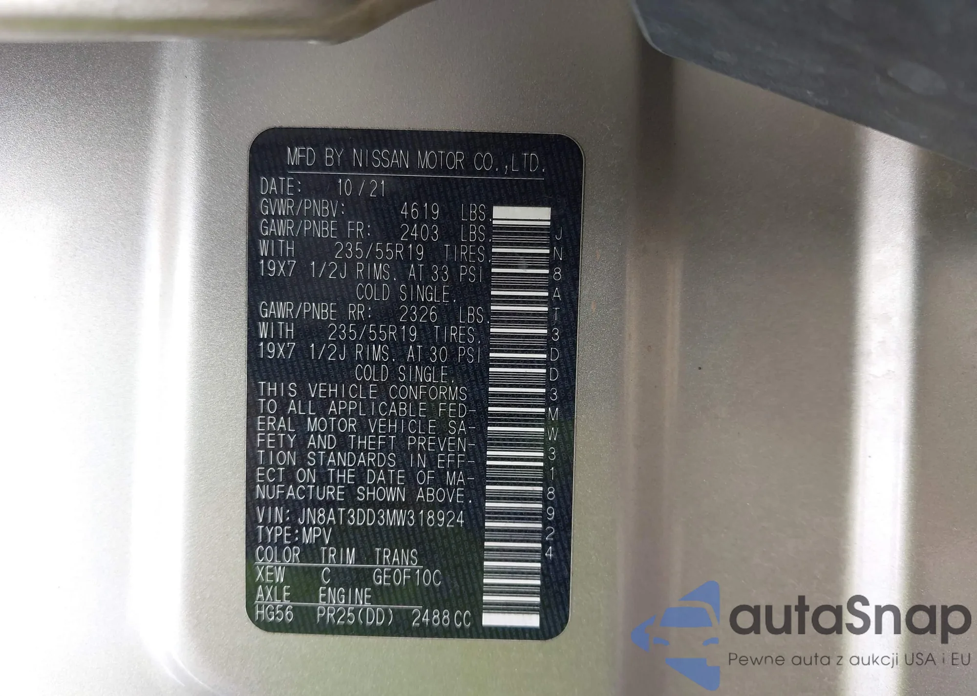 LOT: 43428016 VIN: 3N1CN8EV5ML812097