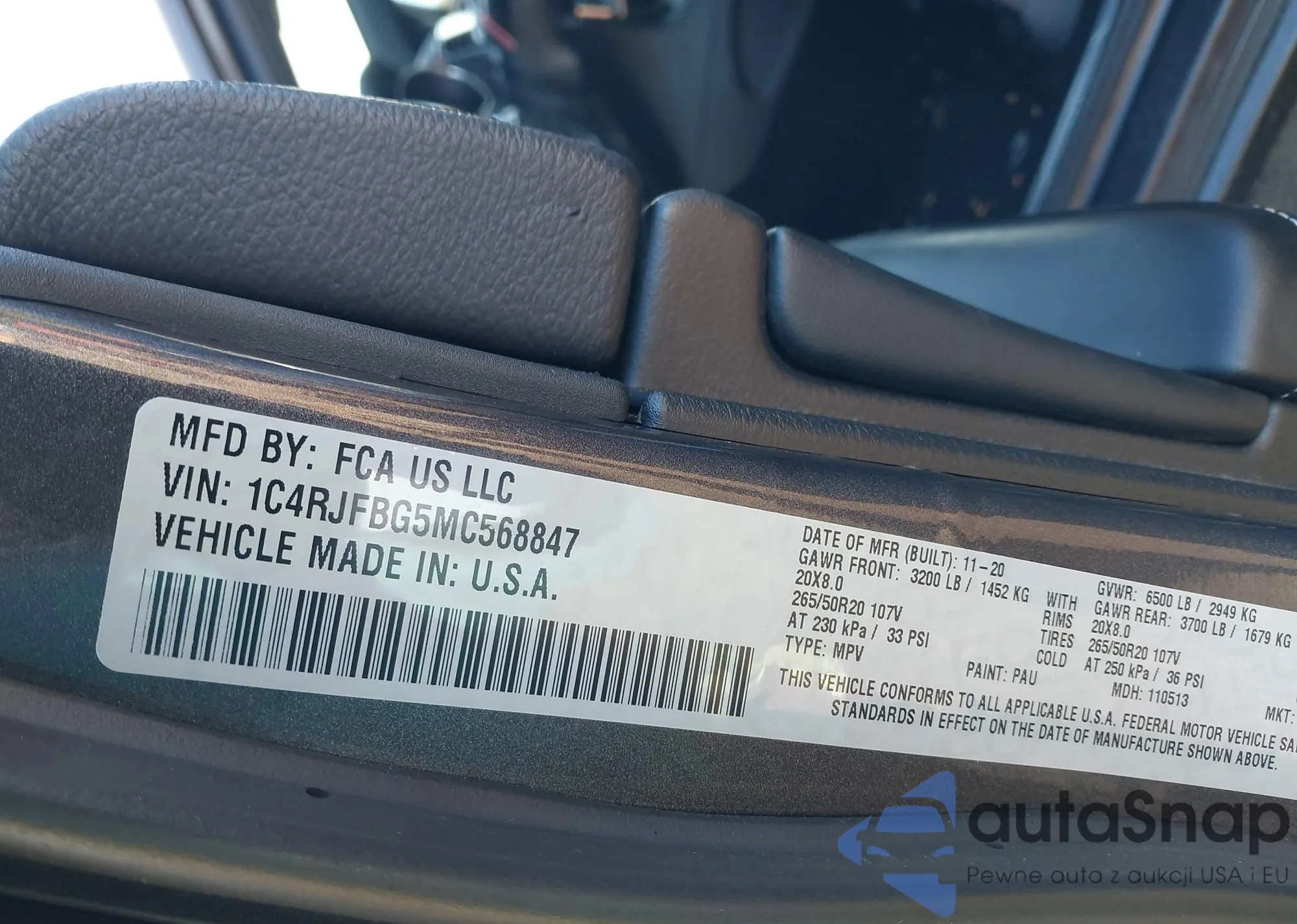• VIN 1C4RJFBG5MC568847