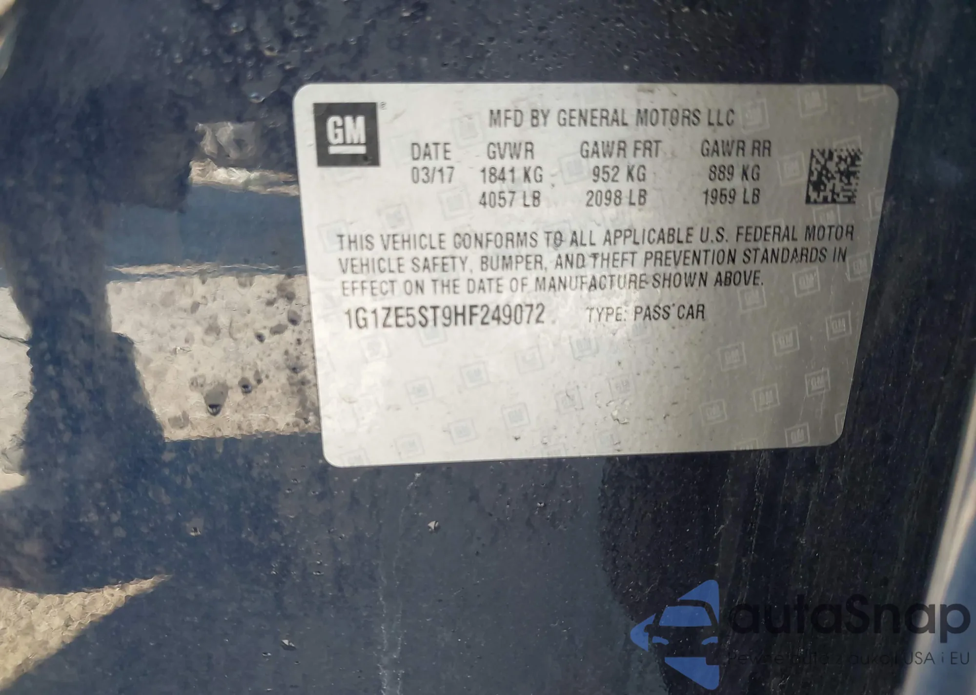 • VIN 1G1ZE5ST9HF249072