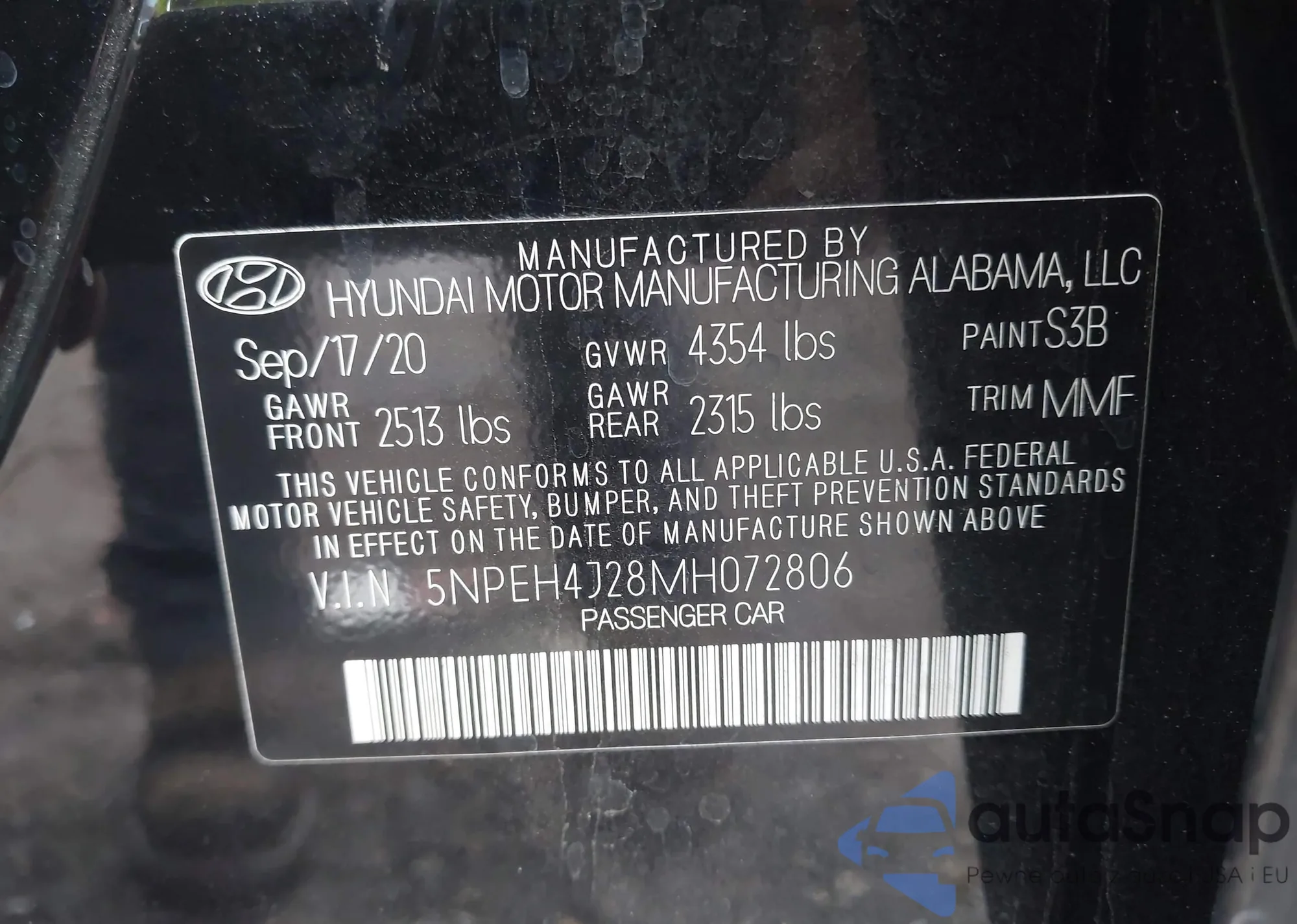 • VIN 5NPEC4AC5BH155341