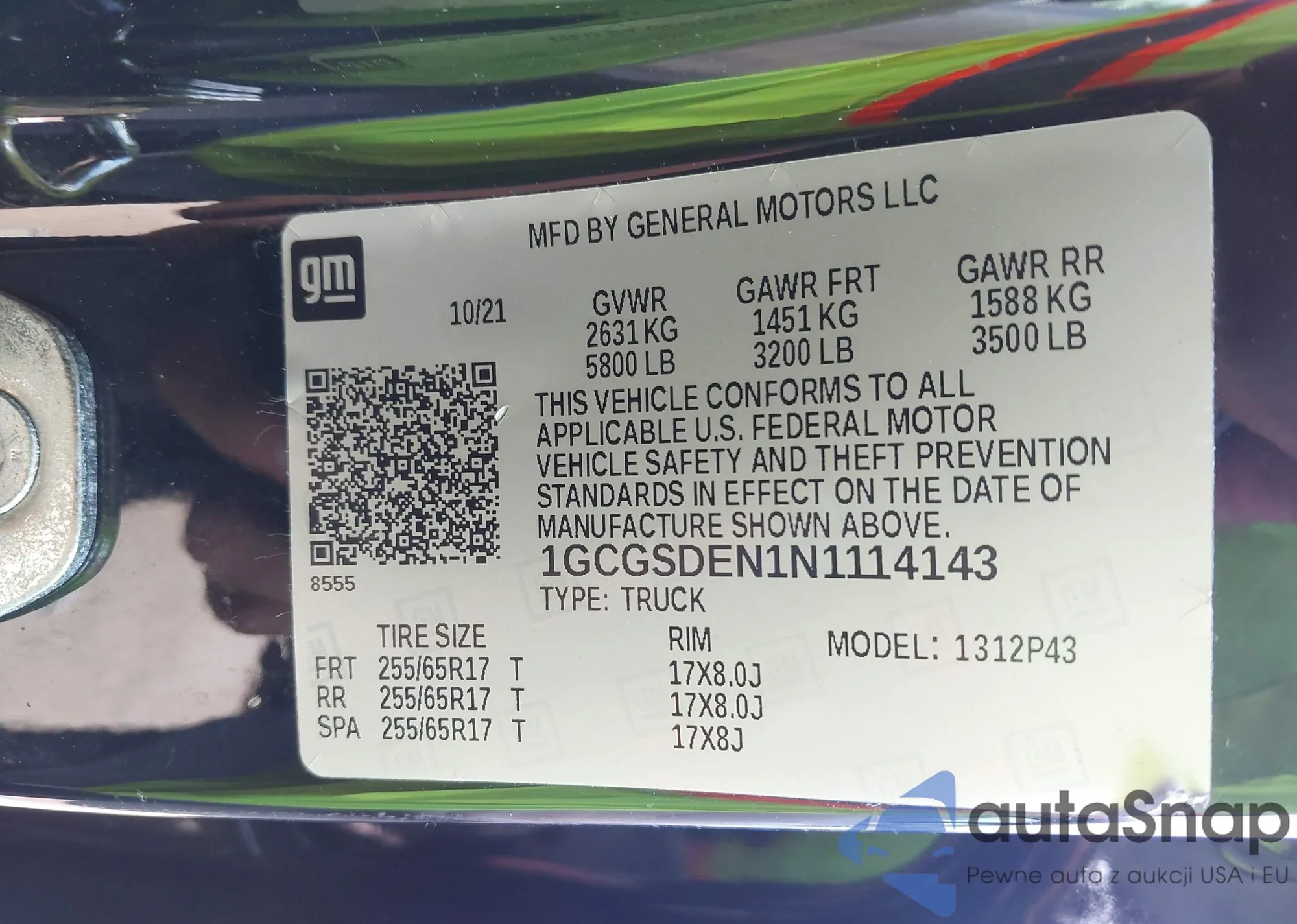 LOT: 43303279 VIN: 1GCGSDEN1N1114143