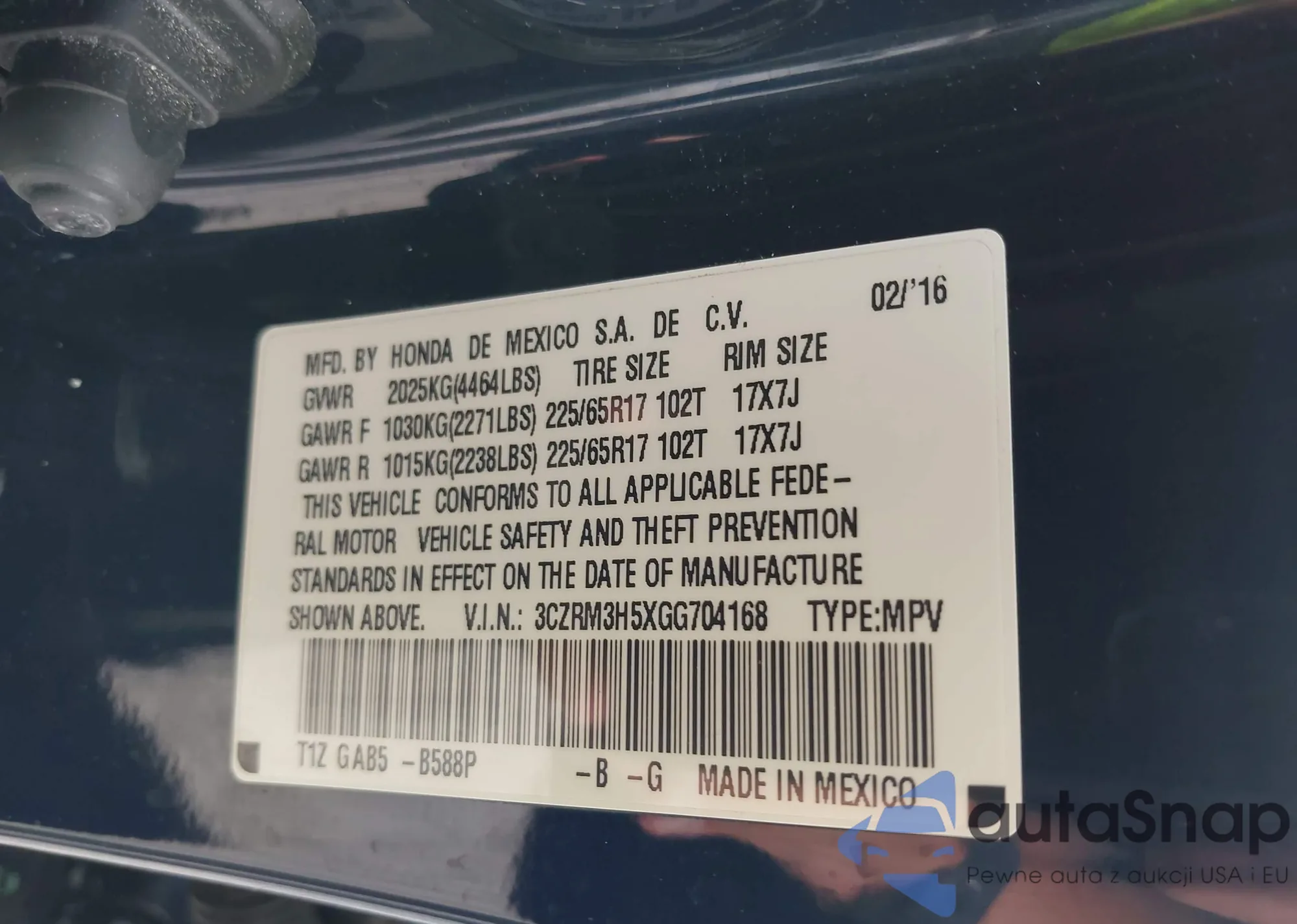 • VIN 3CZRM3H5XGG704168