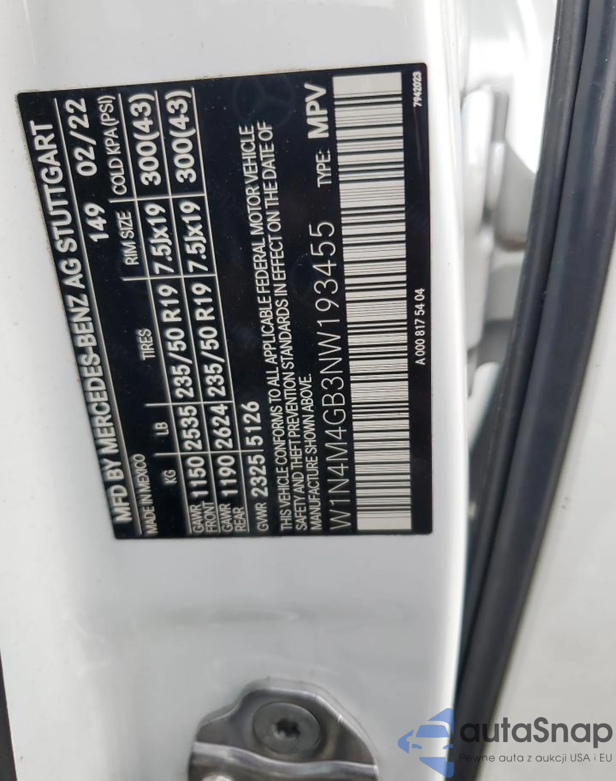 • VIN W1N4M4GB3NW193455