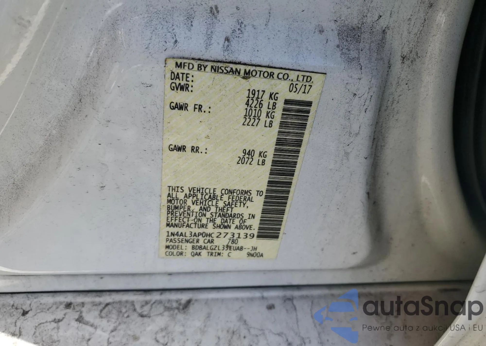 LOT: 87370745 VIN: 1N4AL3AP0HC273139