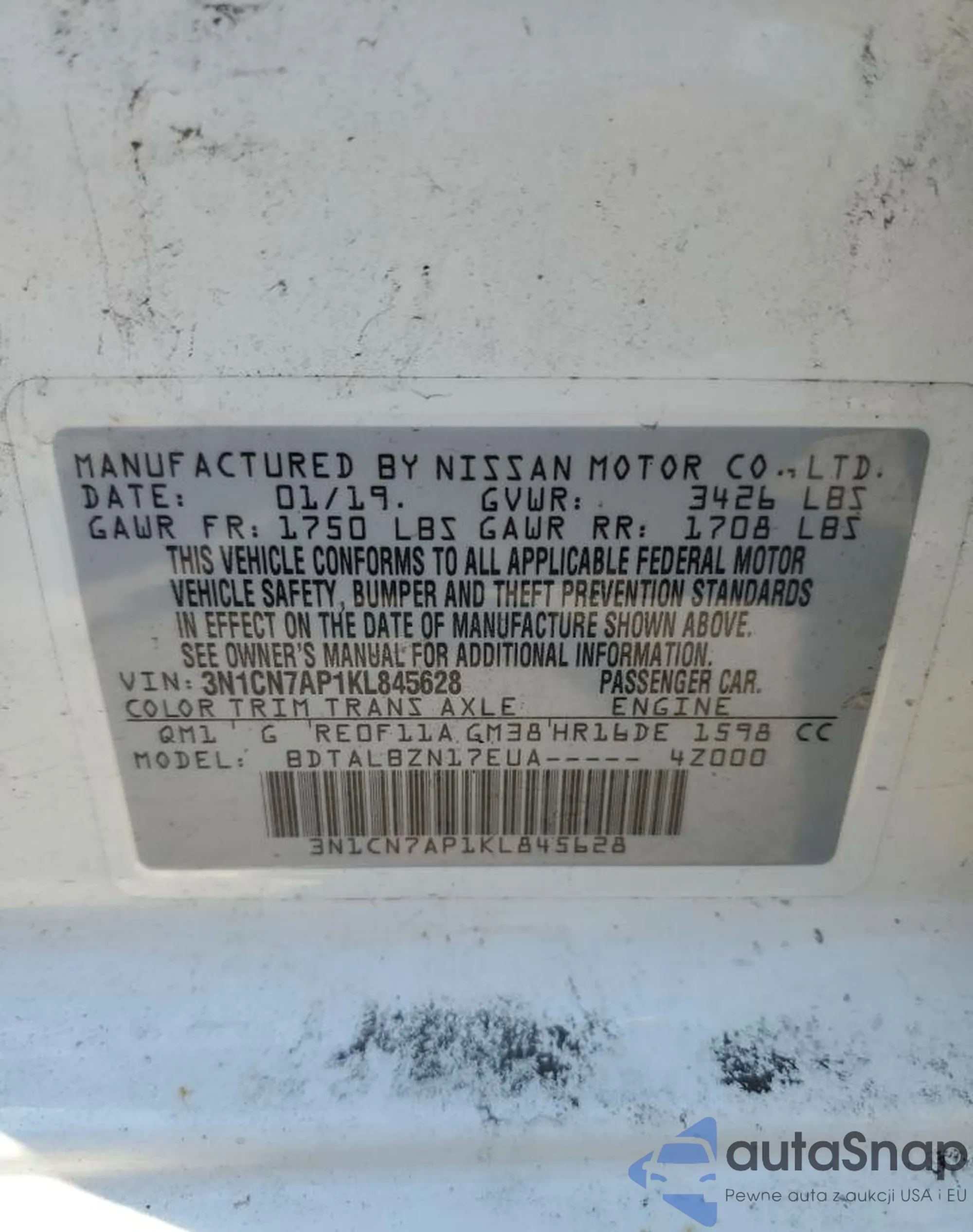 LOT: 69945815 VIN: 5N1AT2MV9KC803531