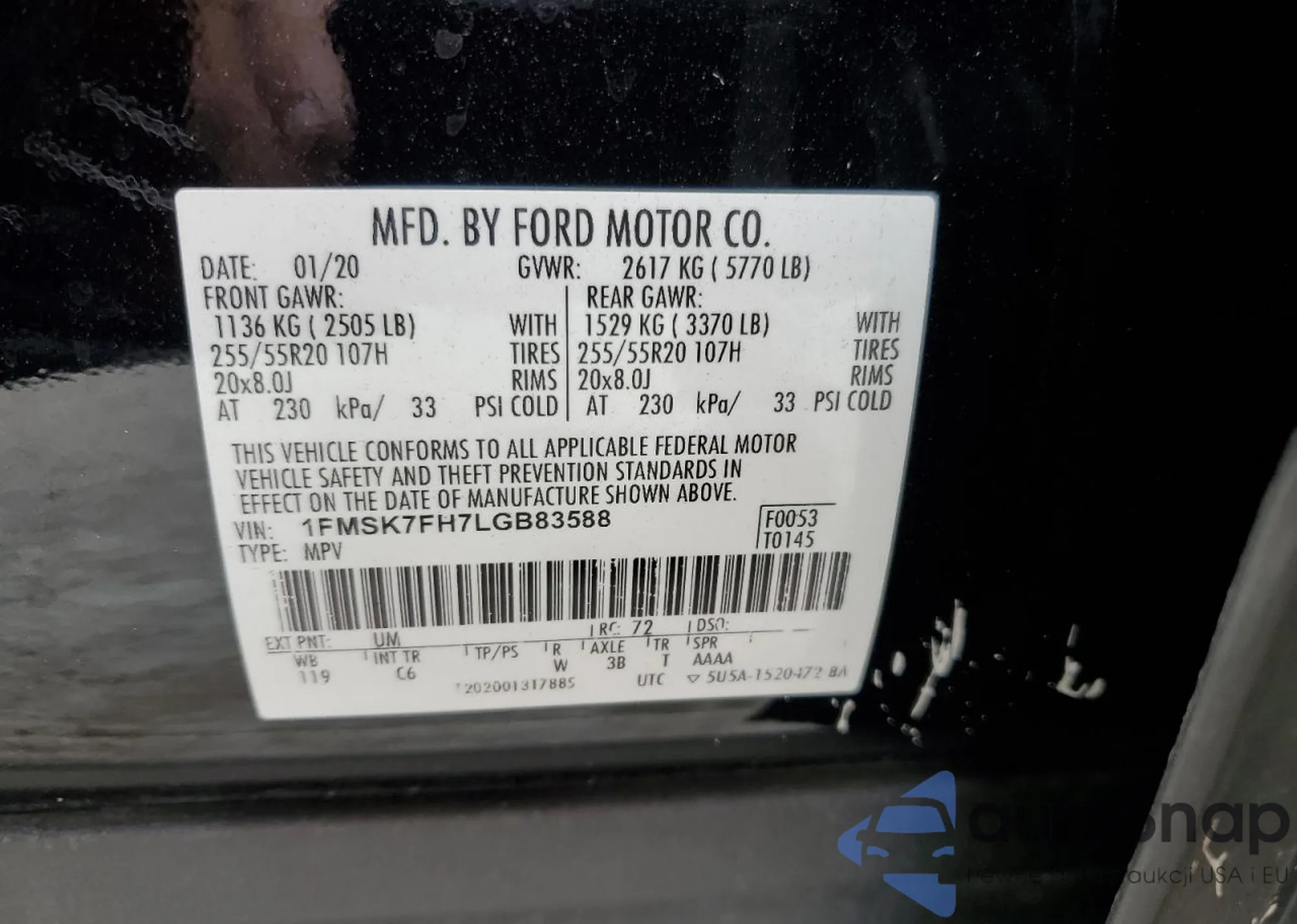 • VIN 1FMSK7FH7LGB83588