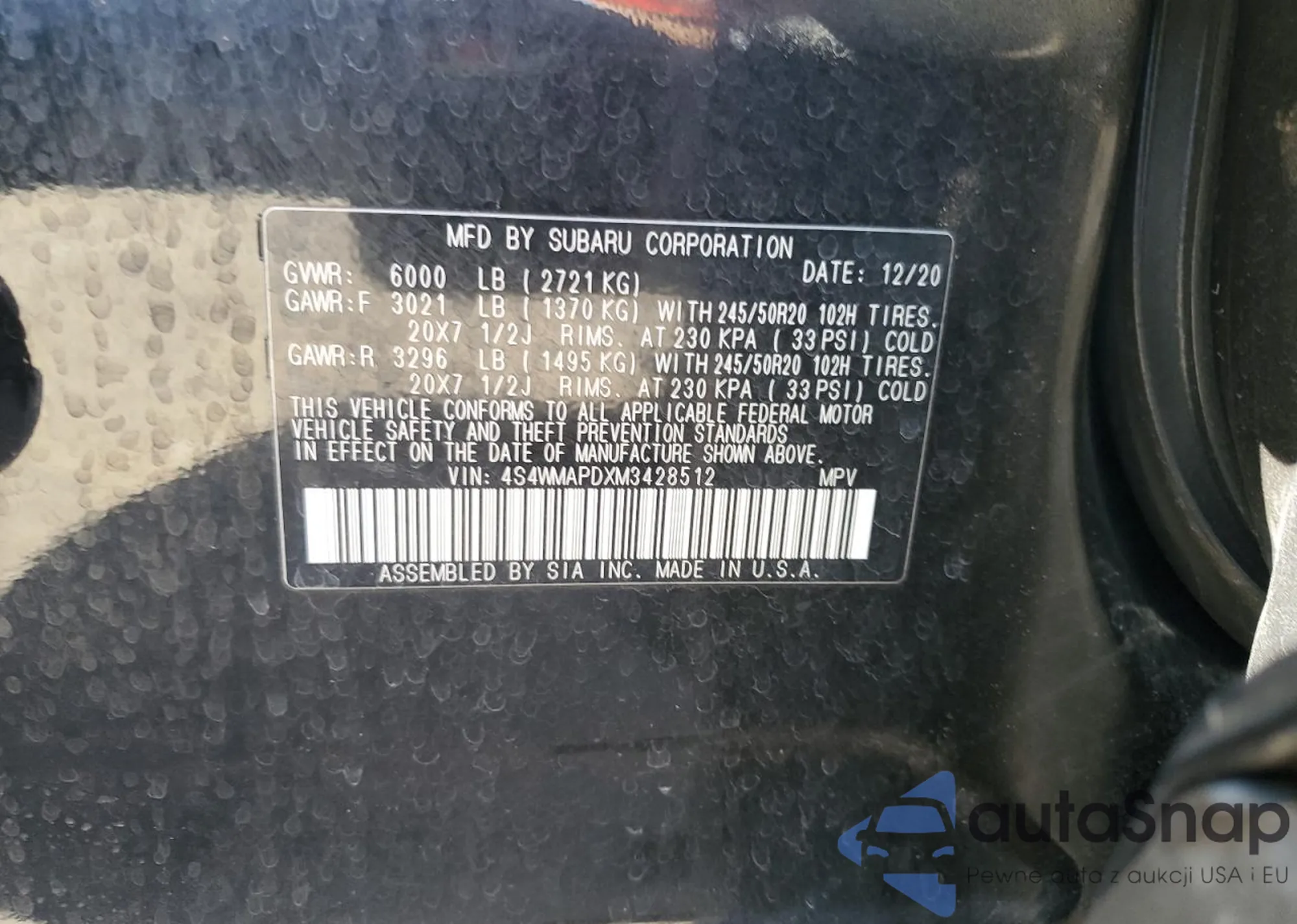 2021 Subaru Ascent Limited из США, поврежденный, VIN 4S4WMAPDXM3428512