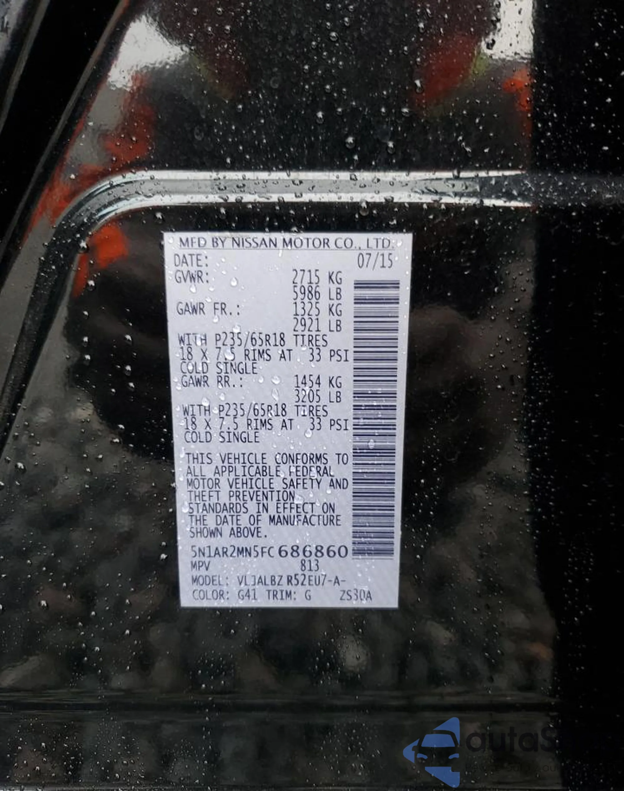 • VIN 5N1AZ2MG0FN207587