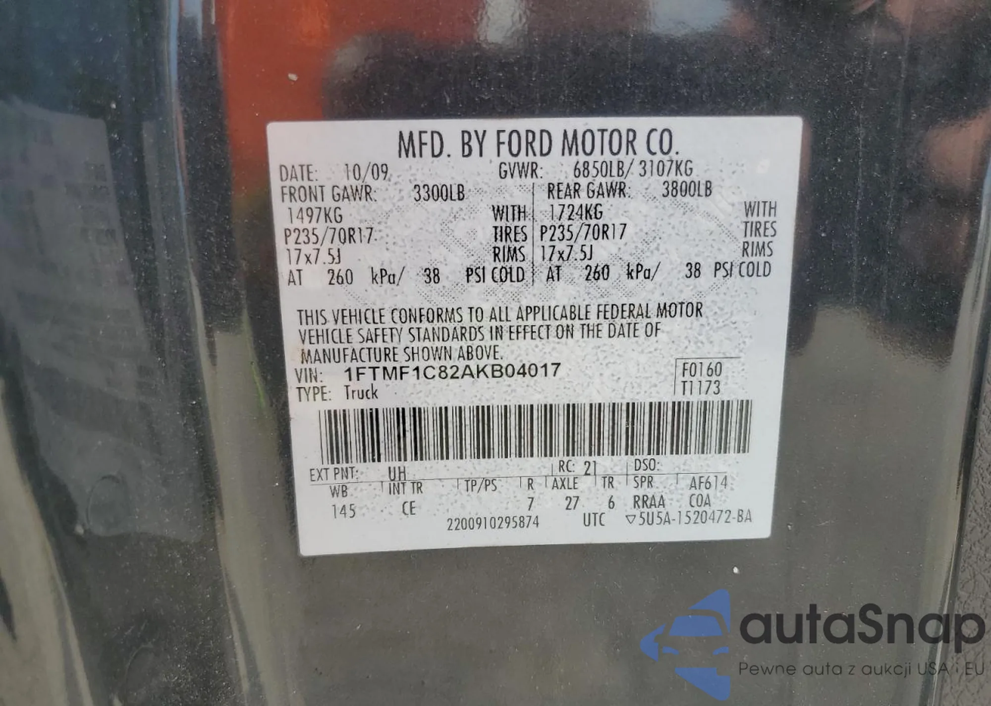 • VIN 1FTMF1C82AKB04017