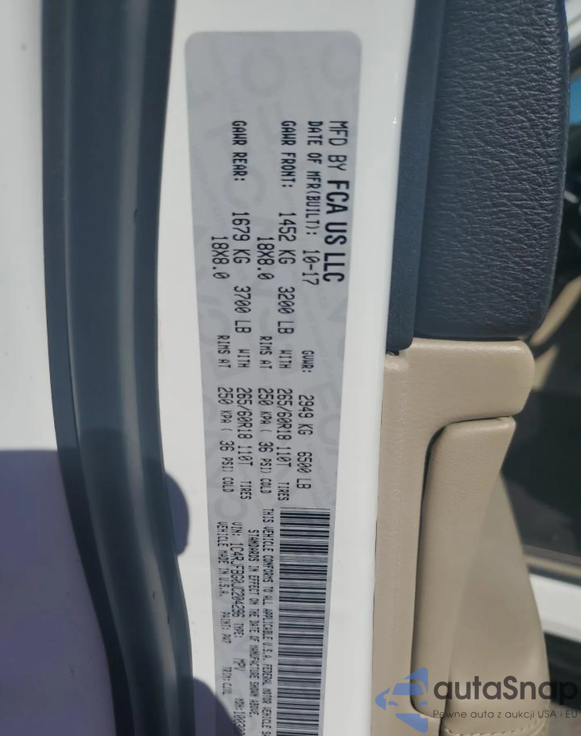 • VIN 1C4RJFBG0JC204296