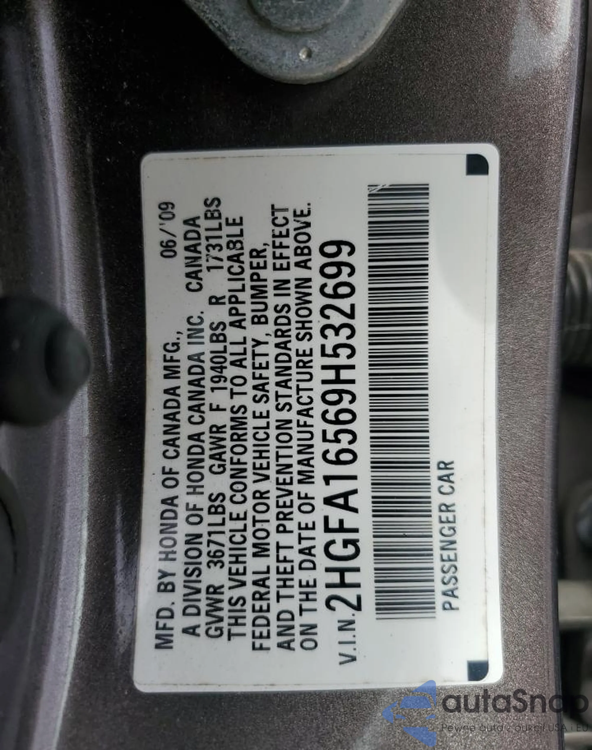 • VIN 2HGFA16569H532699