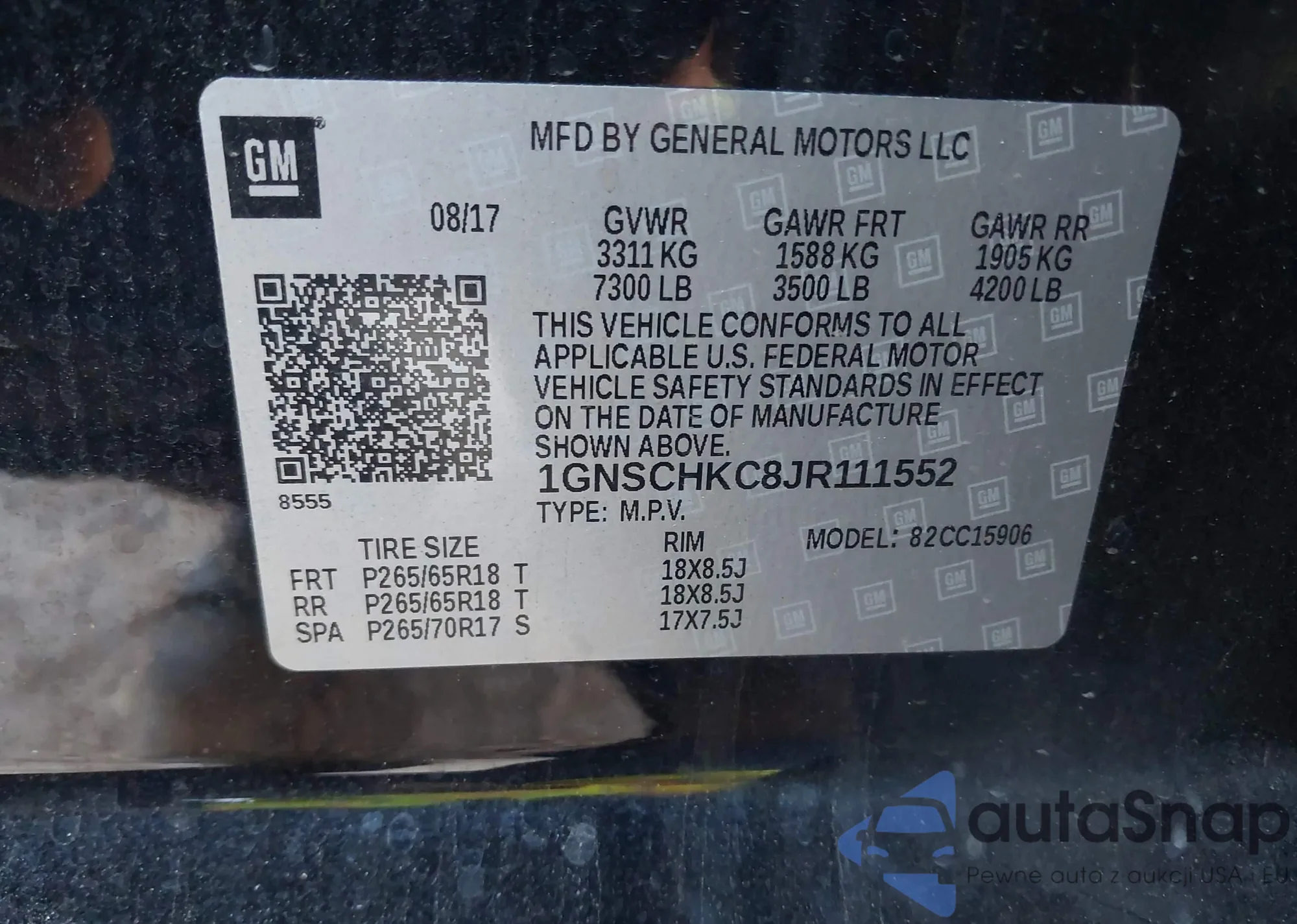 • VIN 1GNSCHKC8JR111552