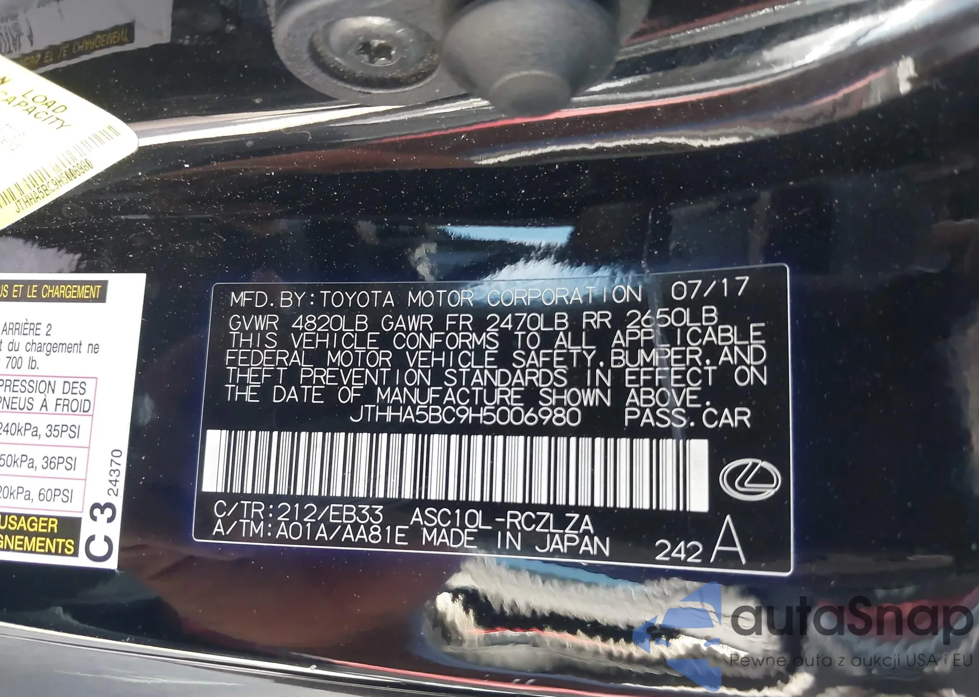 • VIN JTHHA5BC9H5006980