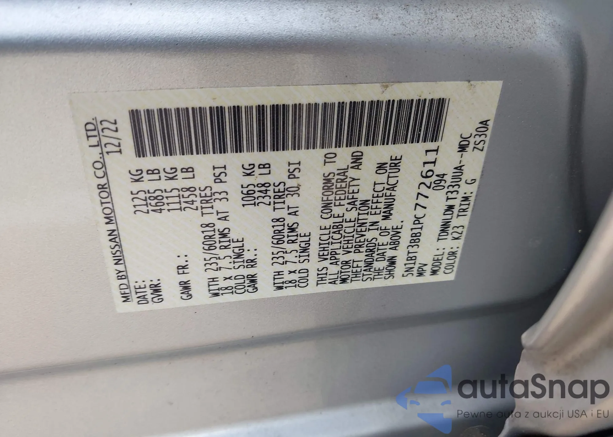 LOT: 38017481 VIN: 1N4AL3AP4GC191316
