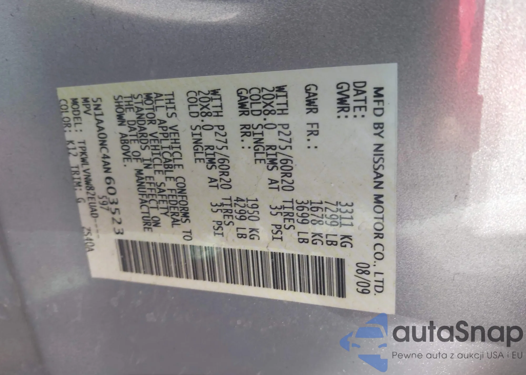 • VIN 5N1AA0NC4AN603523