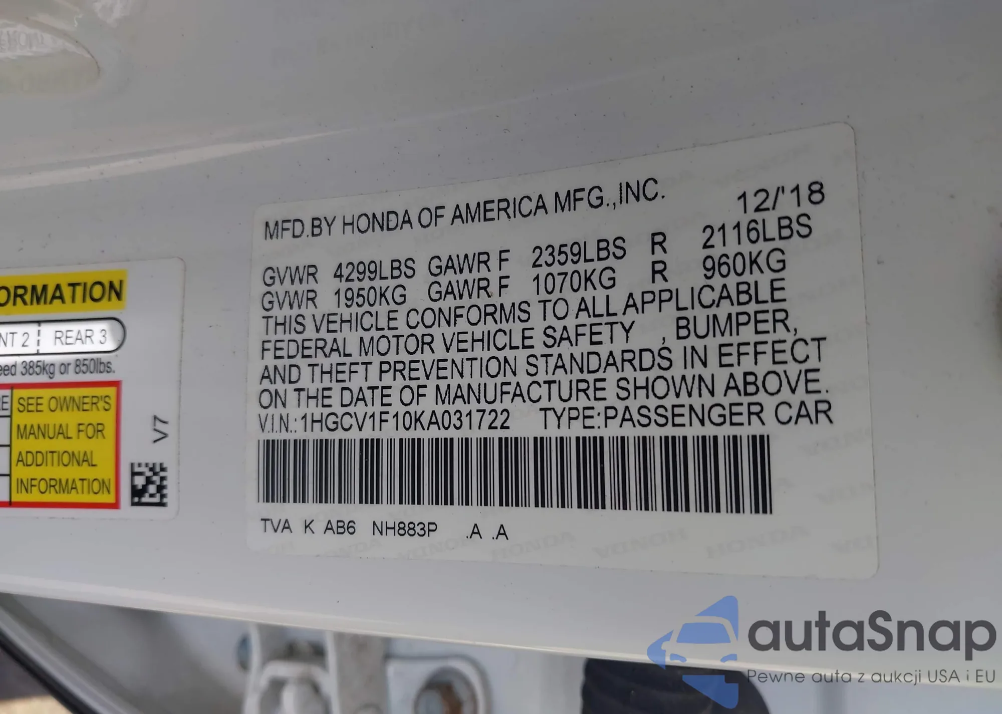 • VIN 2HGEJ6675VH586130