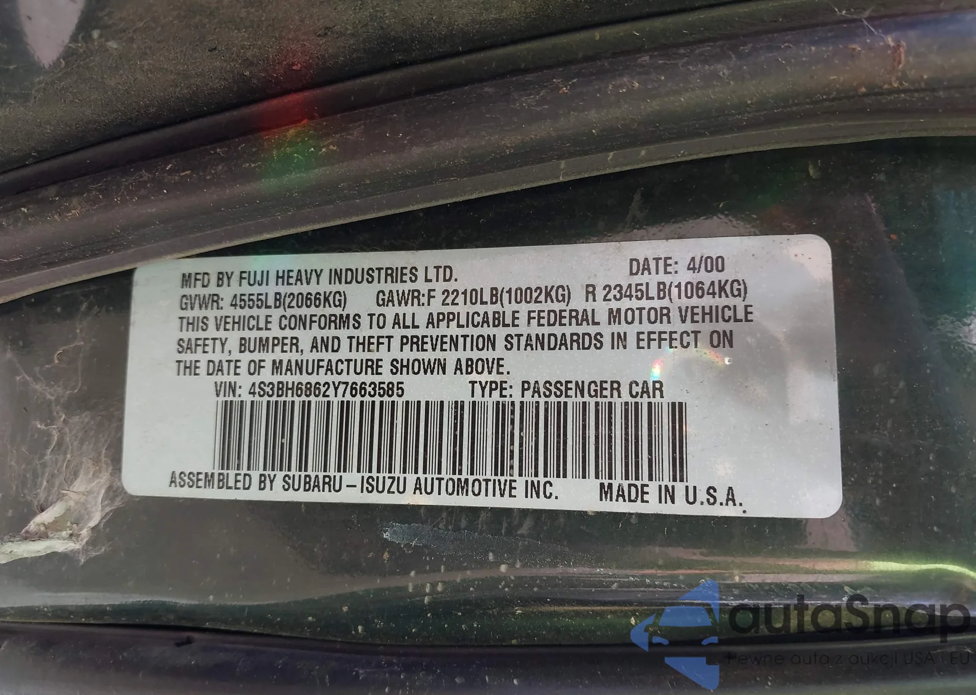 LOT: 43538025 VIN: JA3AM44H2VY005711