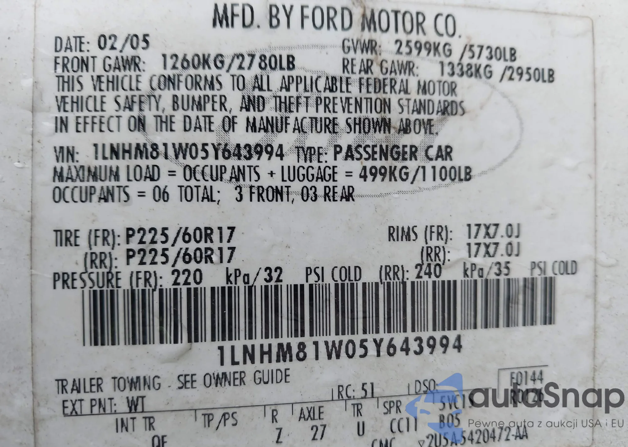 • VIN 1LNHM81W05Y643994