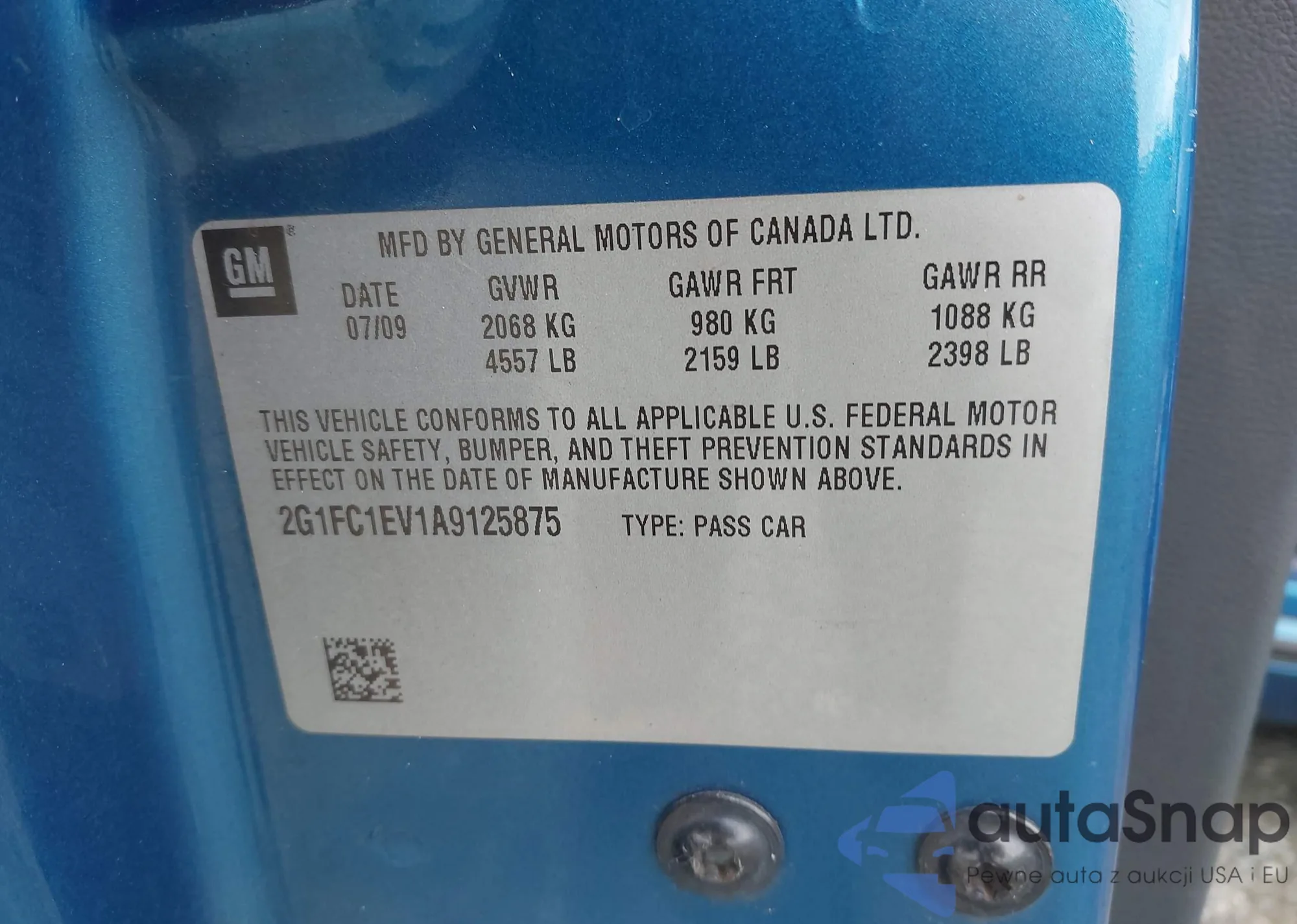 • VIN 2G1FC1EV1A9125875