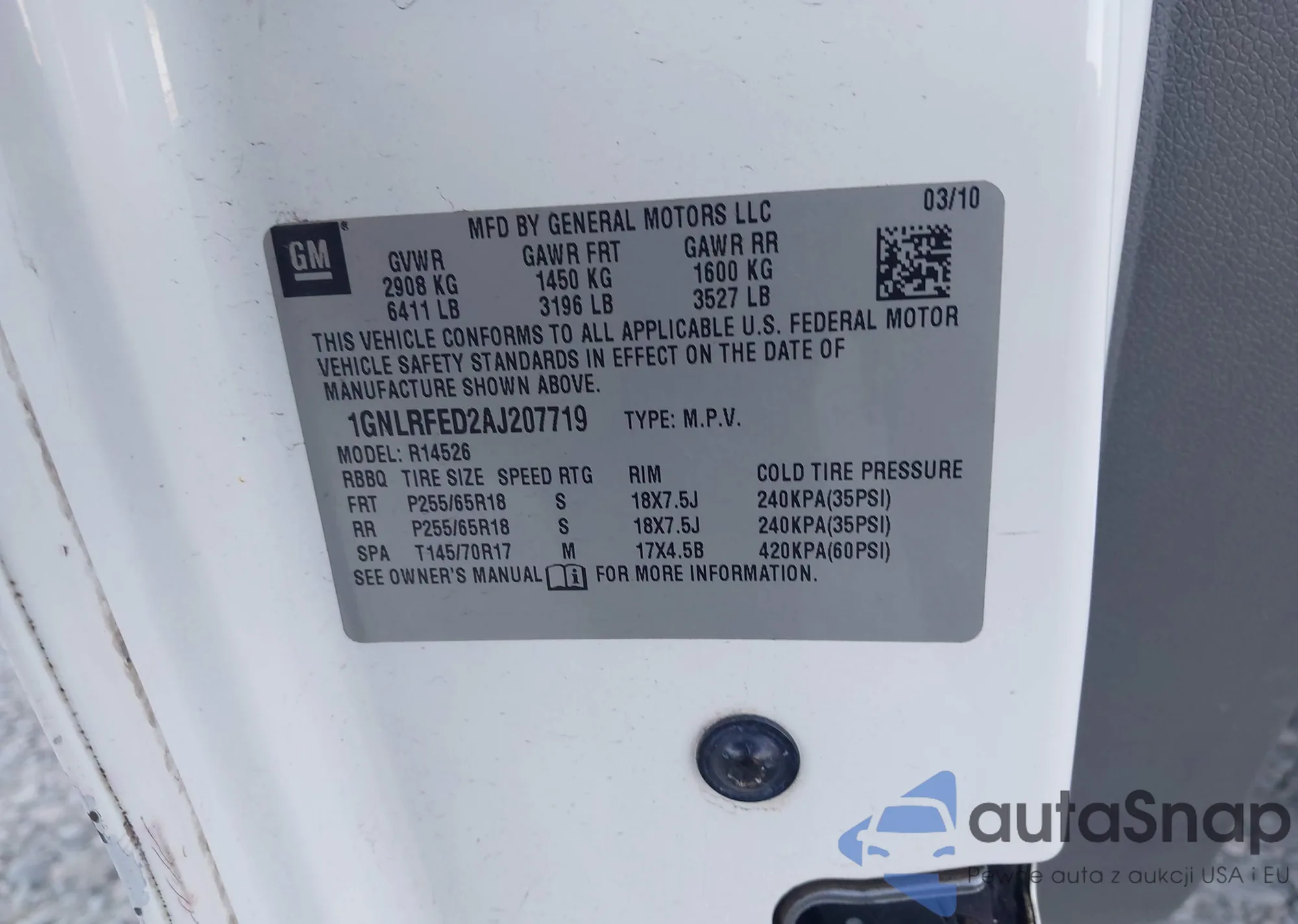 • VIN 1GNLRFED2AJ207719