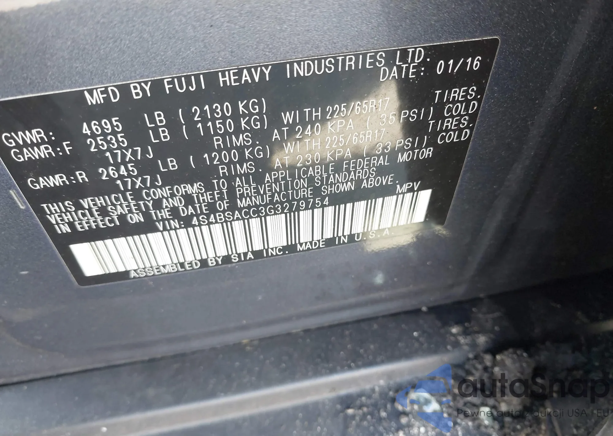 • VIN 4S4BSACC3G3279754