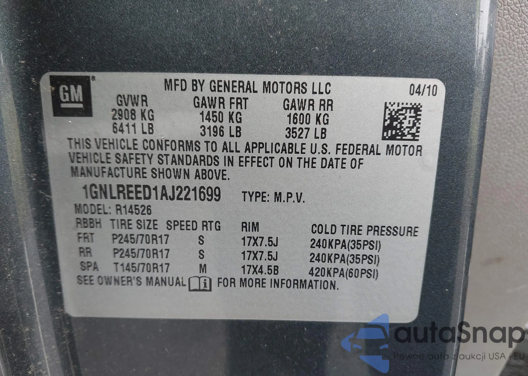 • VIN 1GNLREED1AJ221699