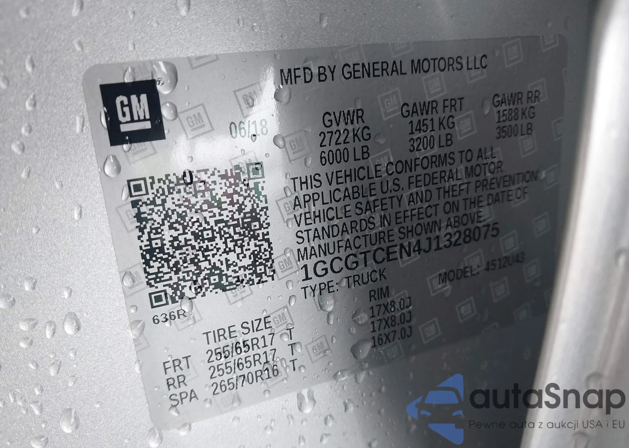 LOT: 43453230 VIN: 1GCGTCEN4J1328075