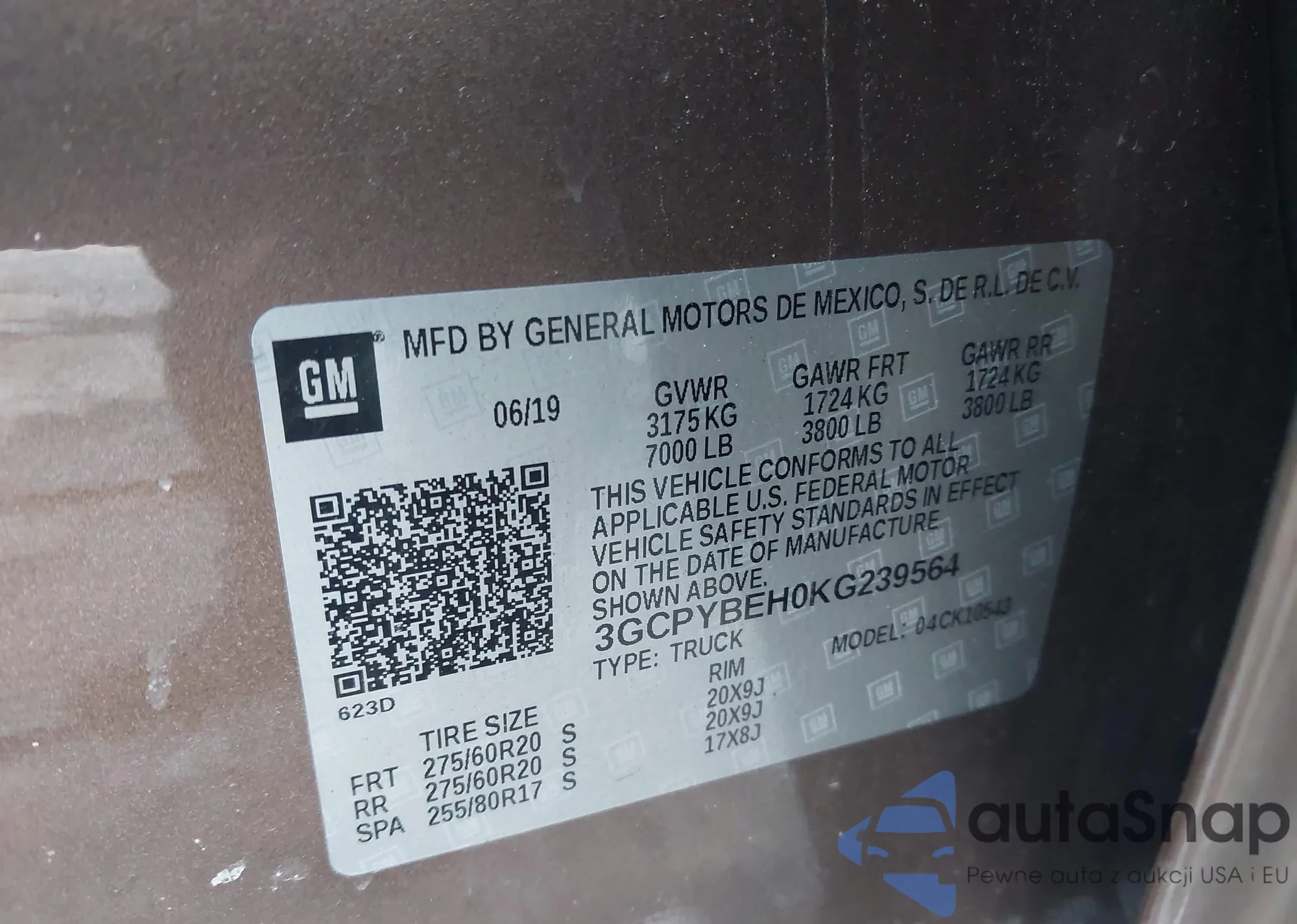LOT: 41410661 VIN: 3GCPYBEH0KG239564
