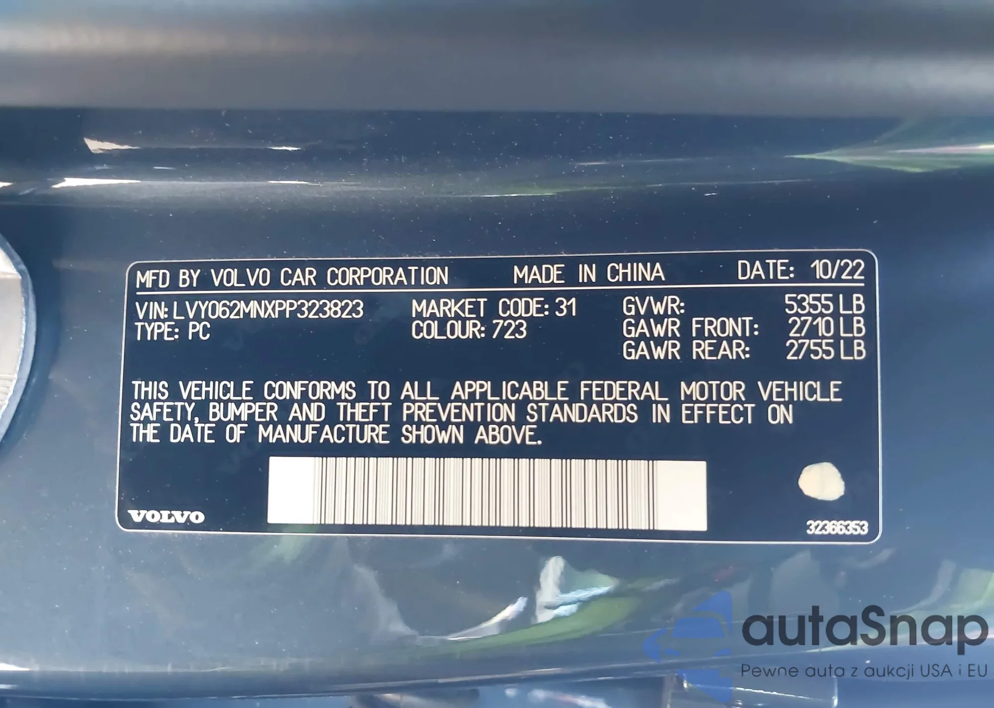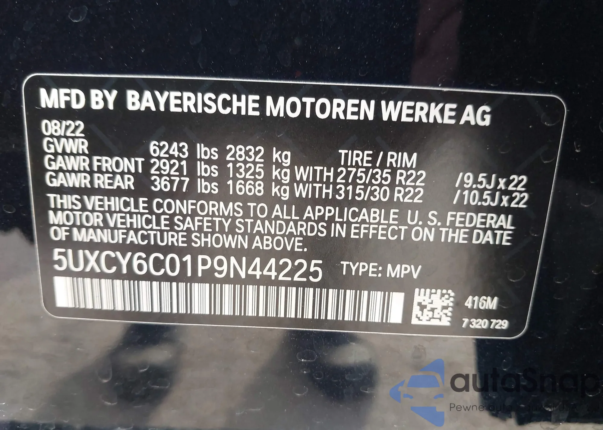 • VIN 5UXCY6C01P9N44225