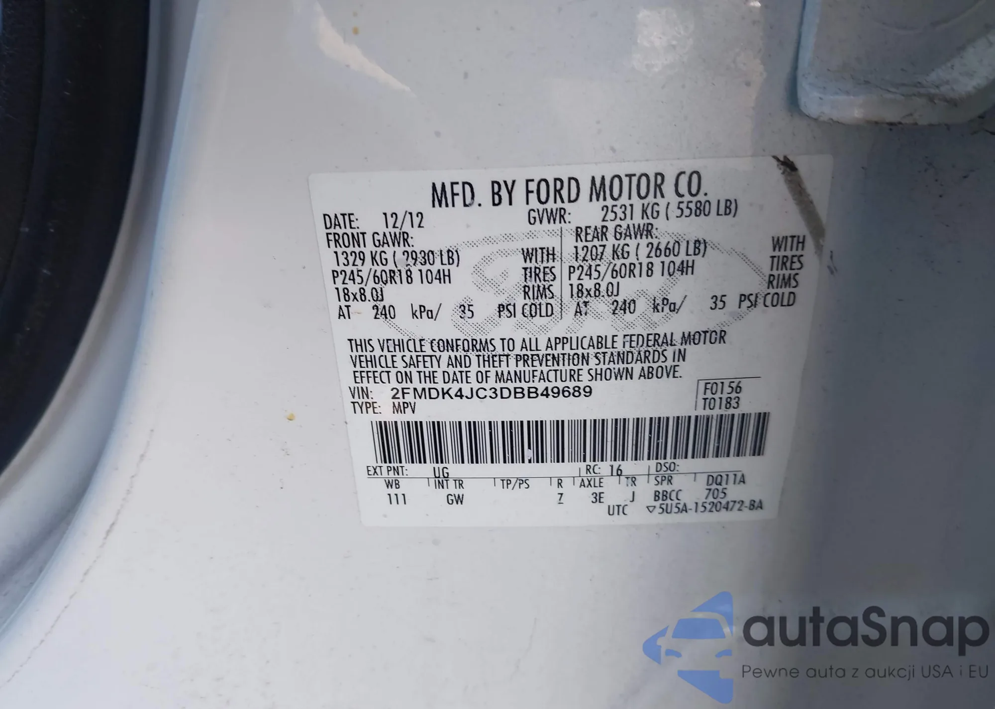 LOT: 43202355 VIN: 2FMDK4JC3DBB49689