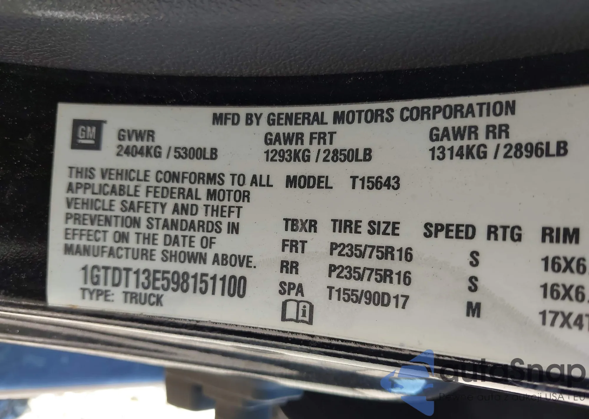 LOT: 43451193 VIN: 1GTDT13E598151100
