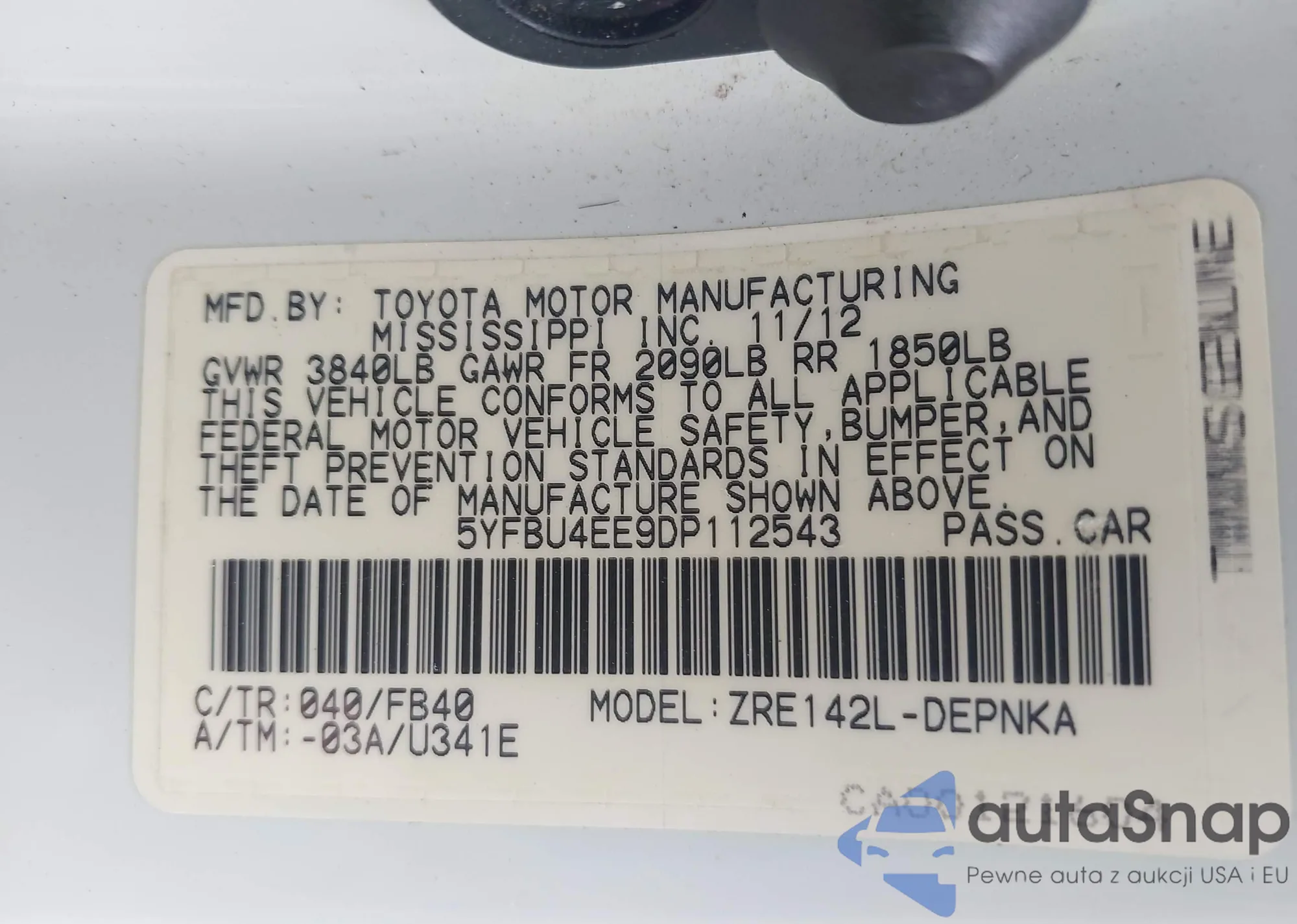 • VIN 4T1BF3EK1AU544337