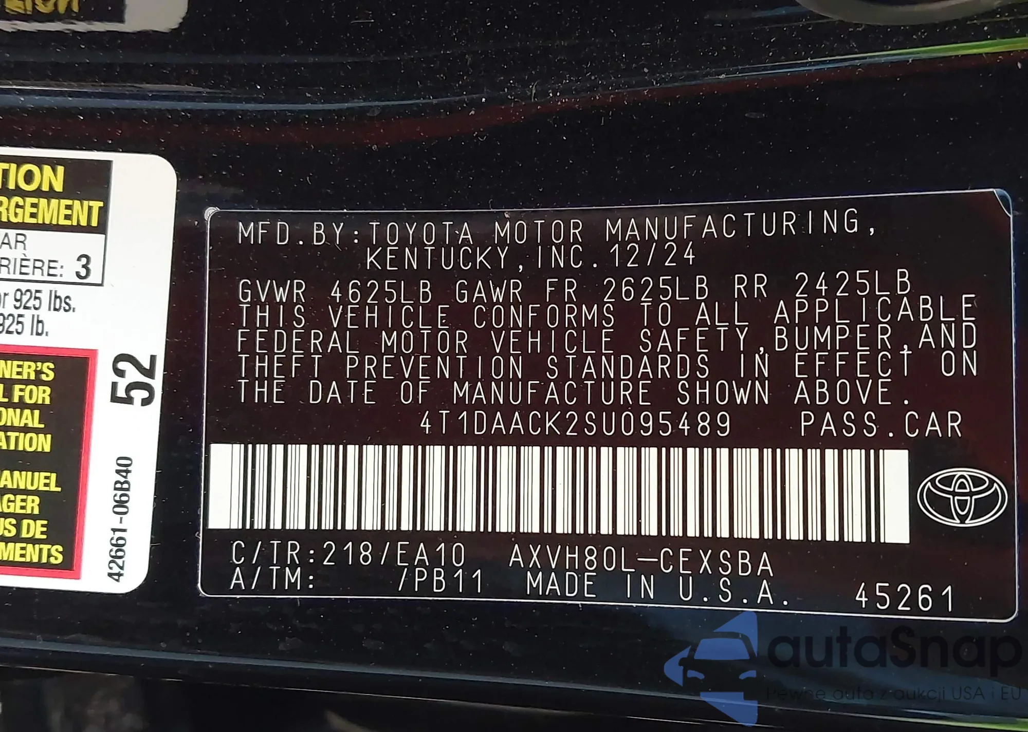LOT: 42562338 VIN: 4T1DAACK2SU095489