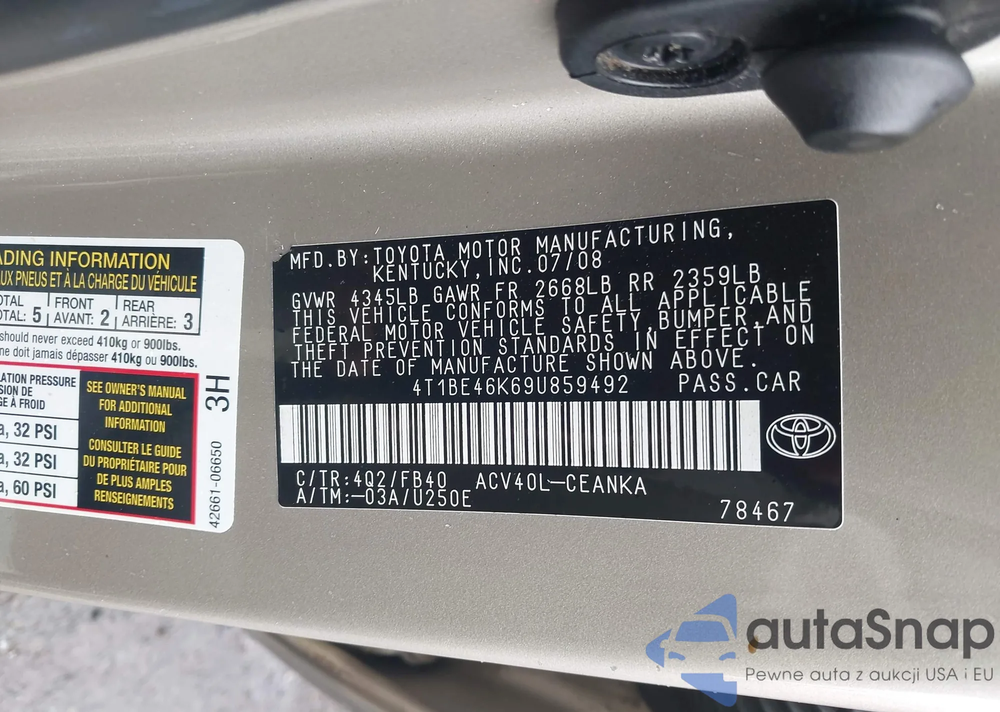 • VIN 4T1BE46K69U859542