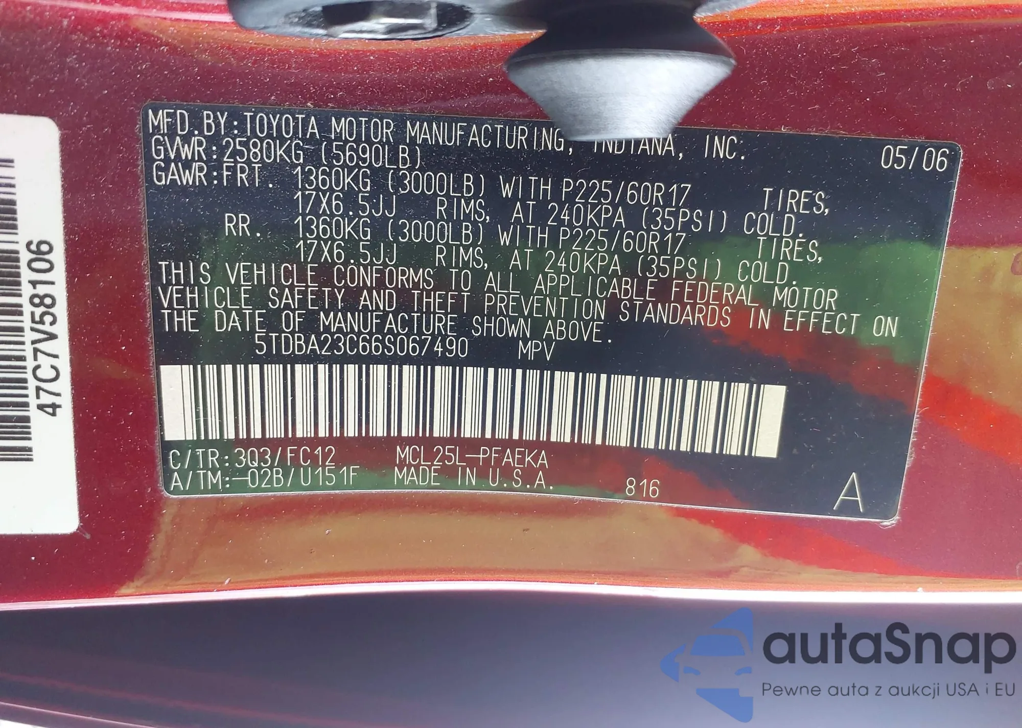 LOT: 43412448 VIN: 1NXBR32E05Z560475