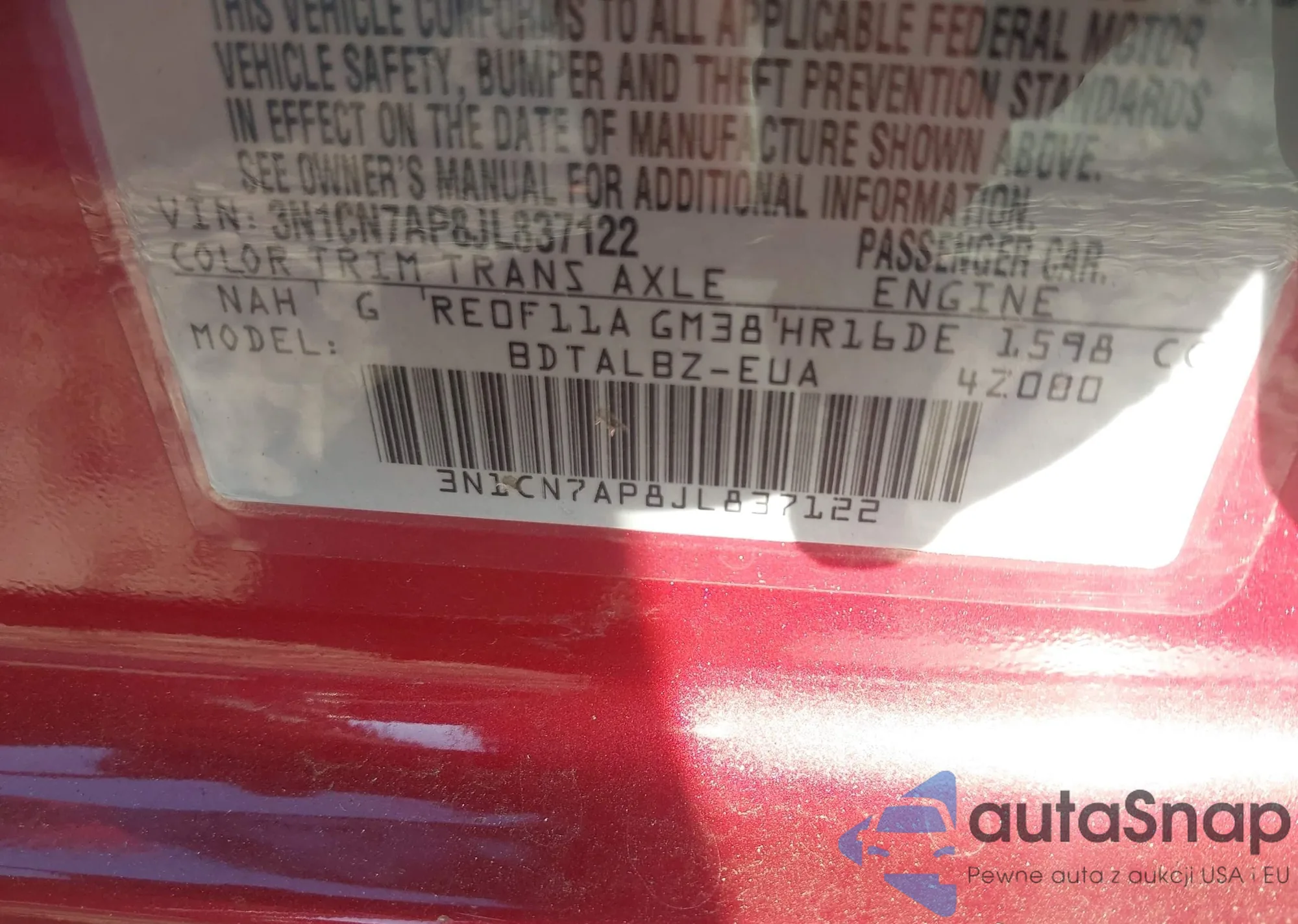 • VIN 3N1CN7AP8JL837122