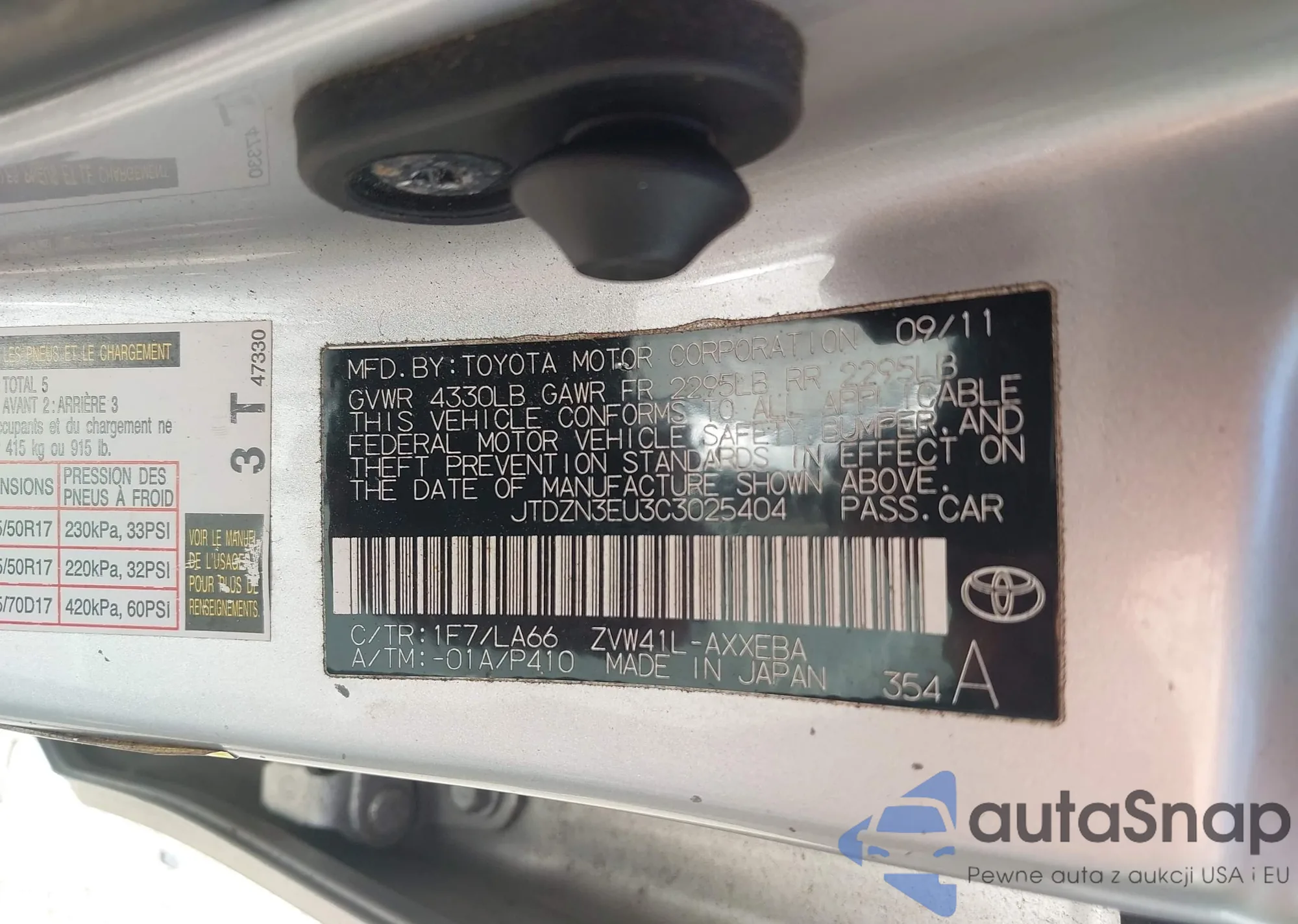 LOT: 43343267 VIN: JTDZN3EU3C3025404