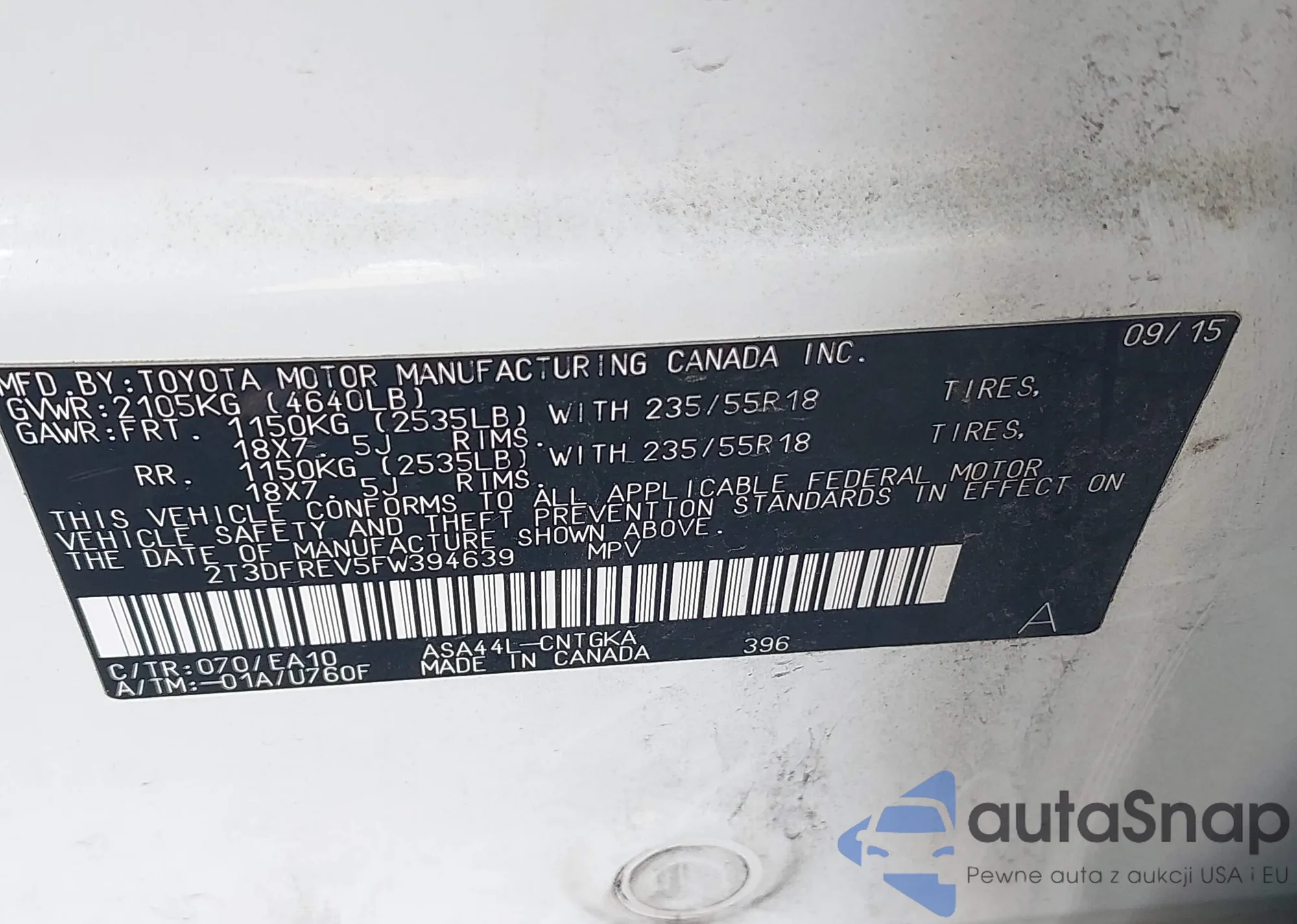 • VIN 2T3DFREV5FW394639