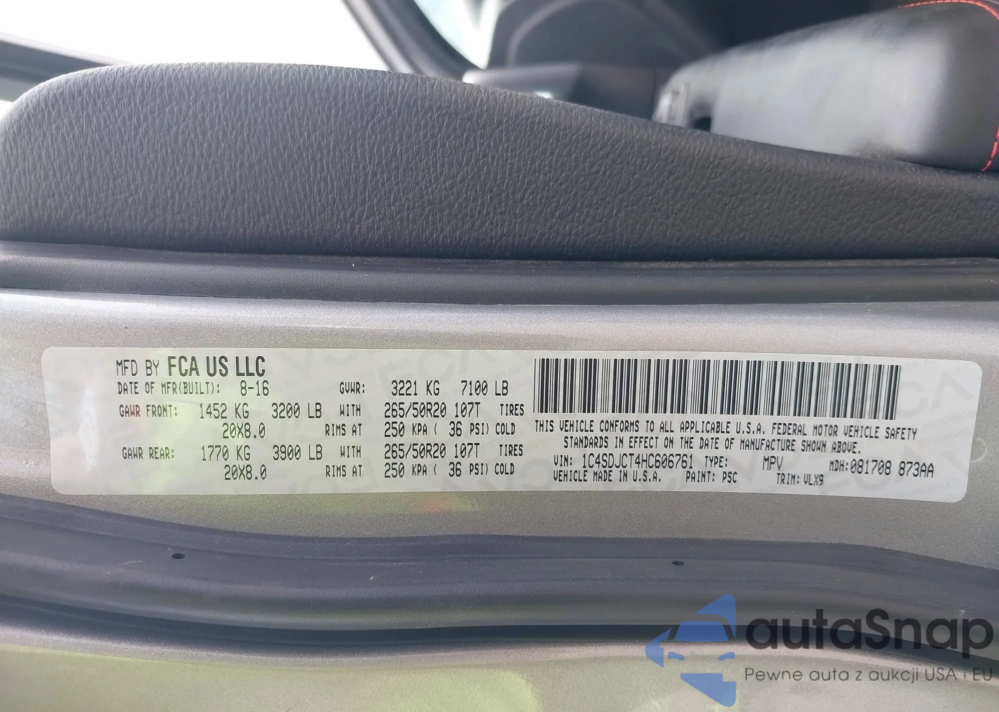 LOT: 43107117 VIN: 1C4SDJCT4HC606761
