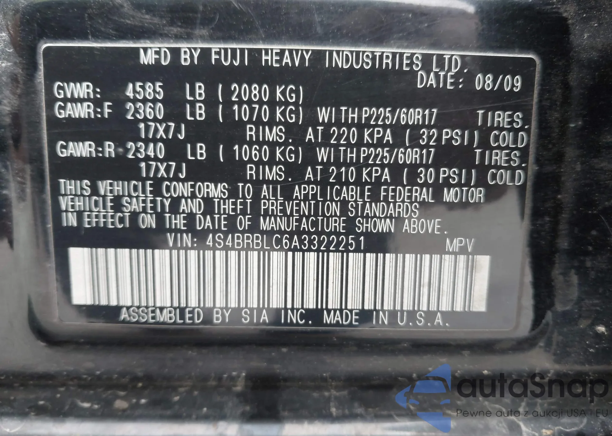 • VIN 4S4BRBLC6A3322251