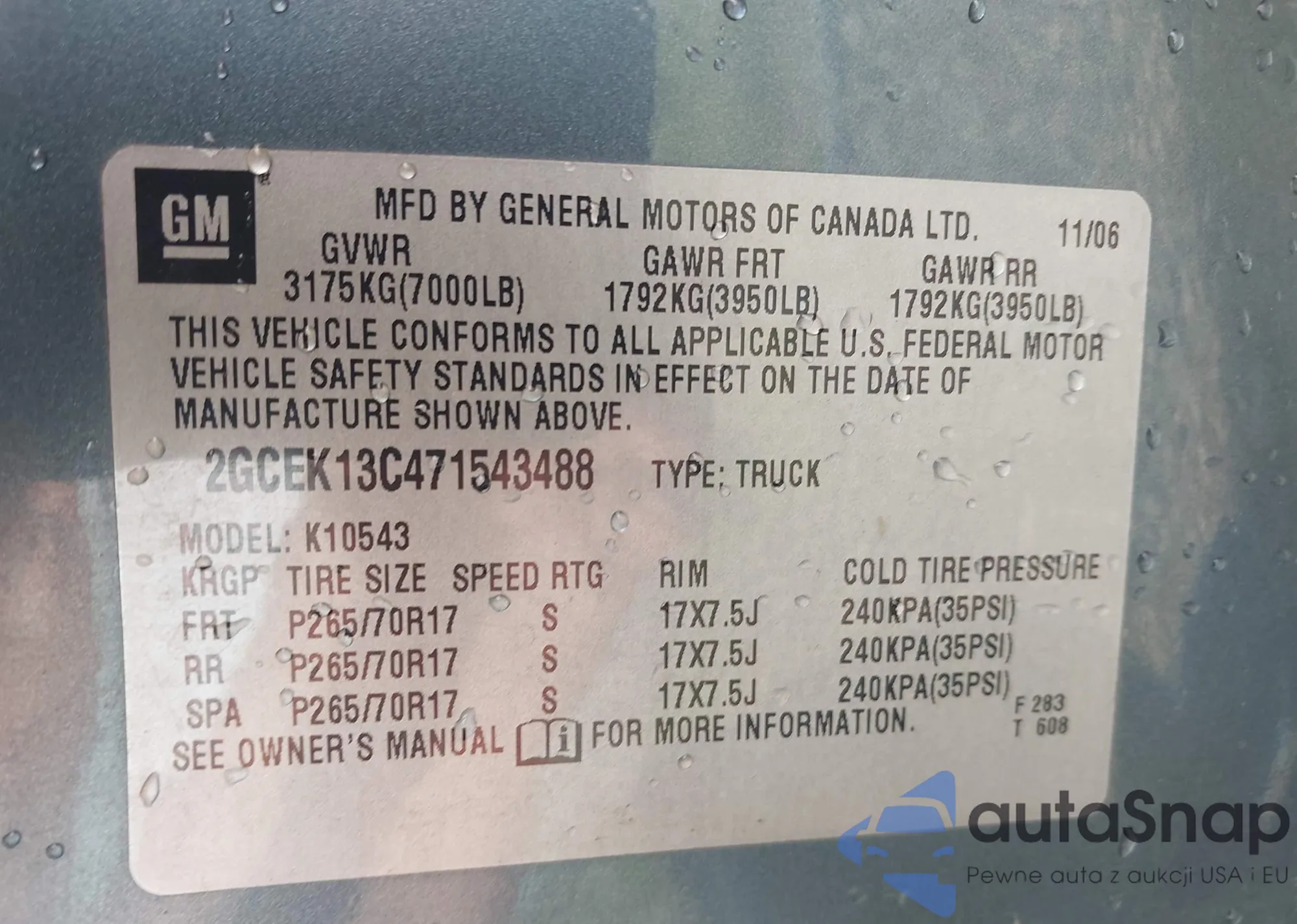 • VIN 2GCEK13C471543488