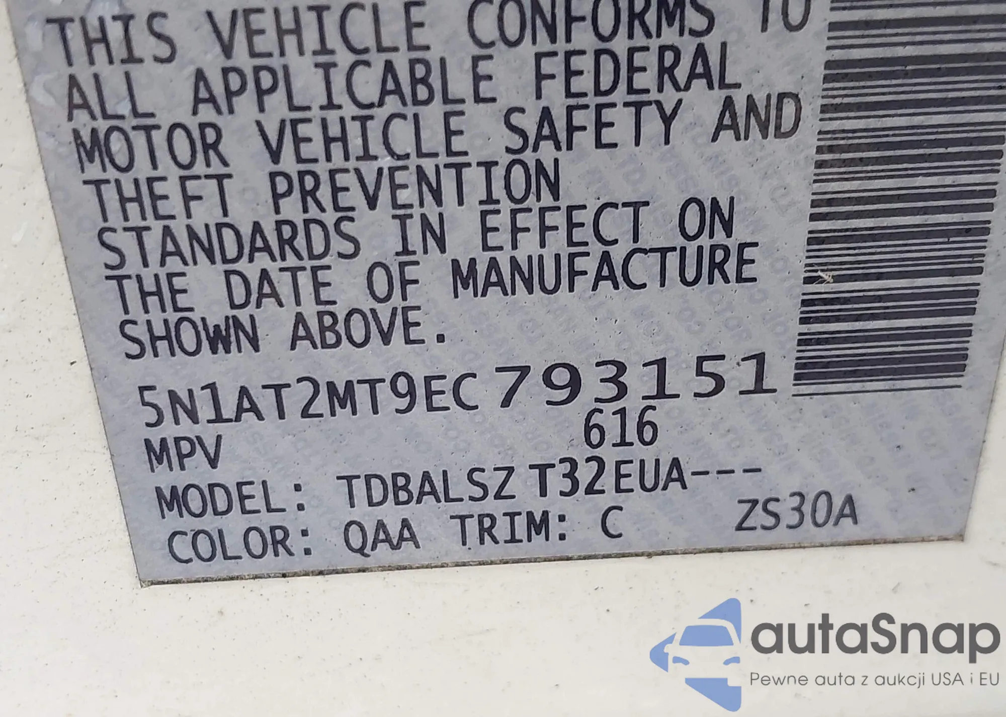 • VIN 5N1AT2MT9EC793151