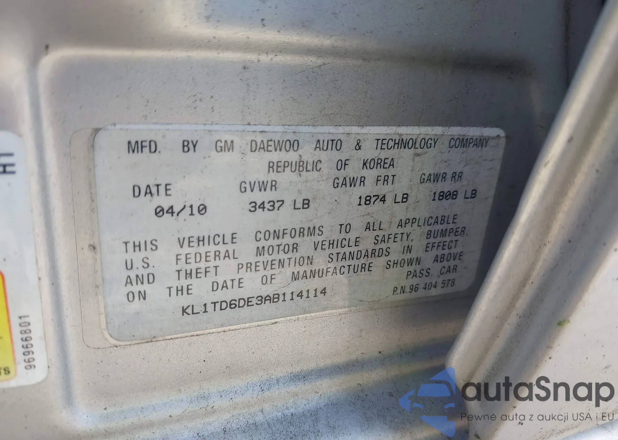 LOT: 42160274 VIN: KL1TD6DE3AB114114