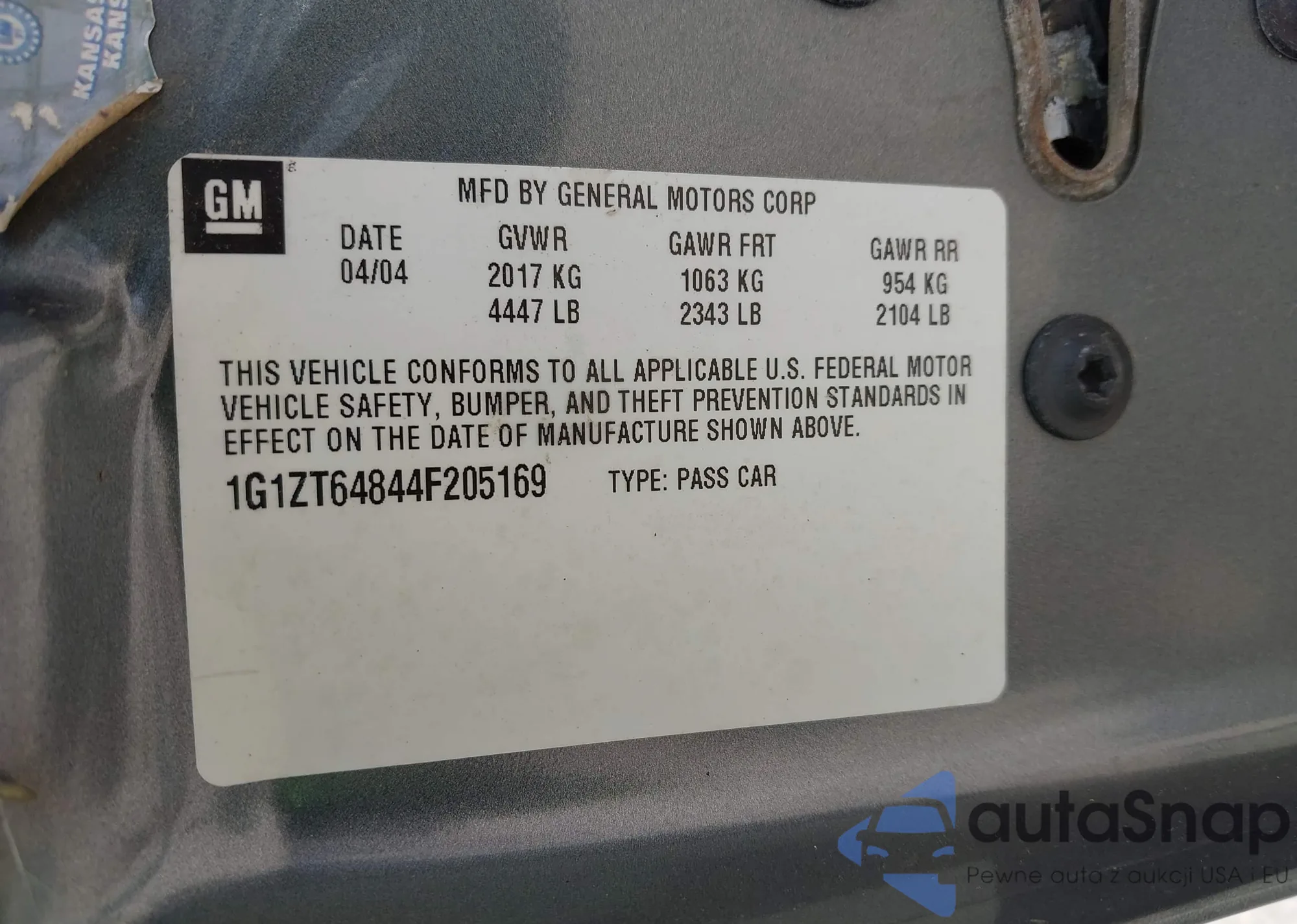 • VIN 1G1ZT64844F205169