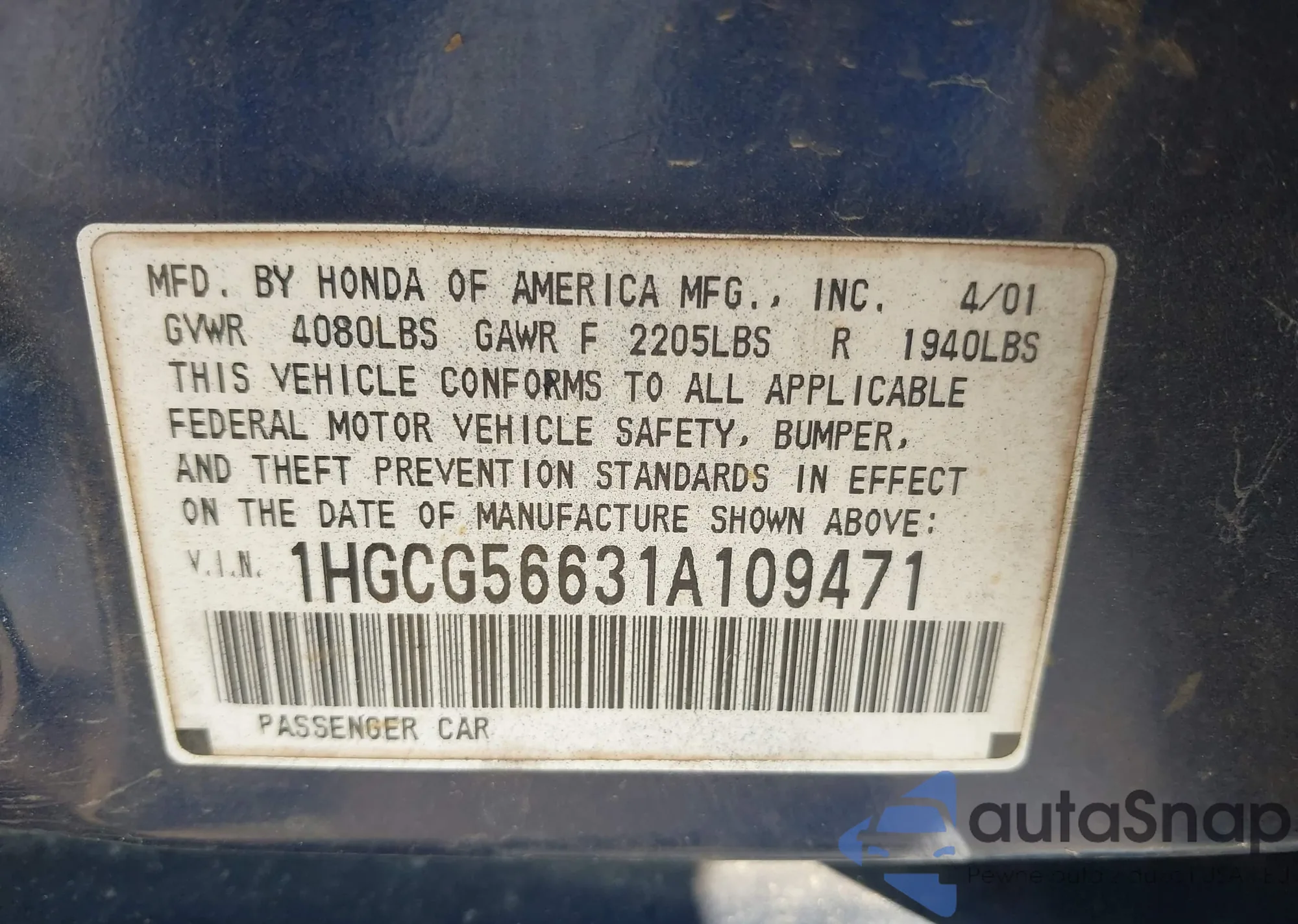 • VIN 1HGCV2F5XJA022226