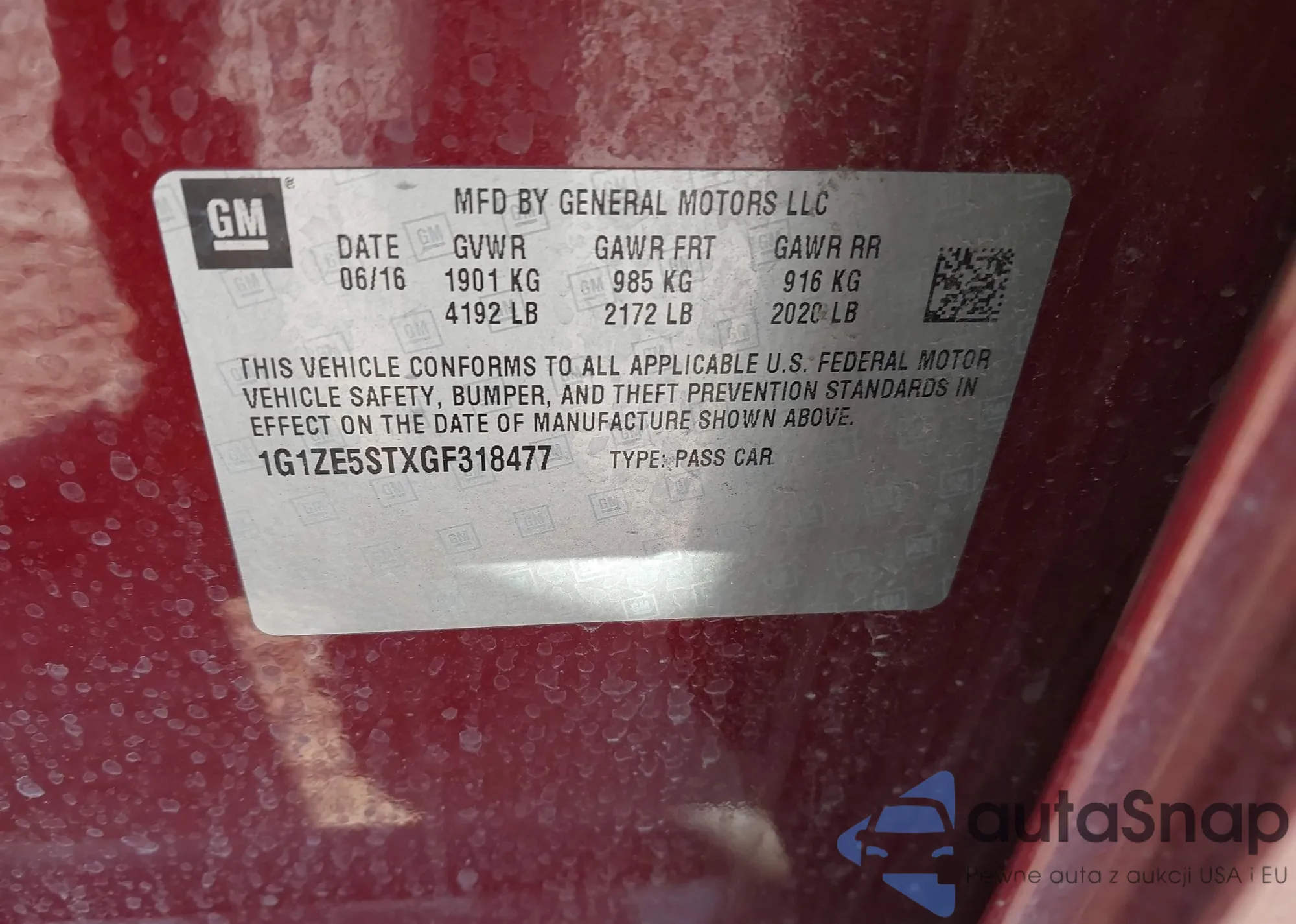LOT: 43421477 VIN: 1G1ZE5STXGF318477