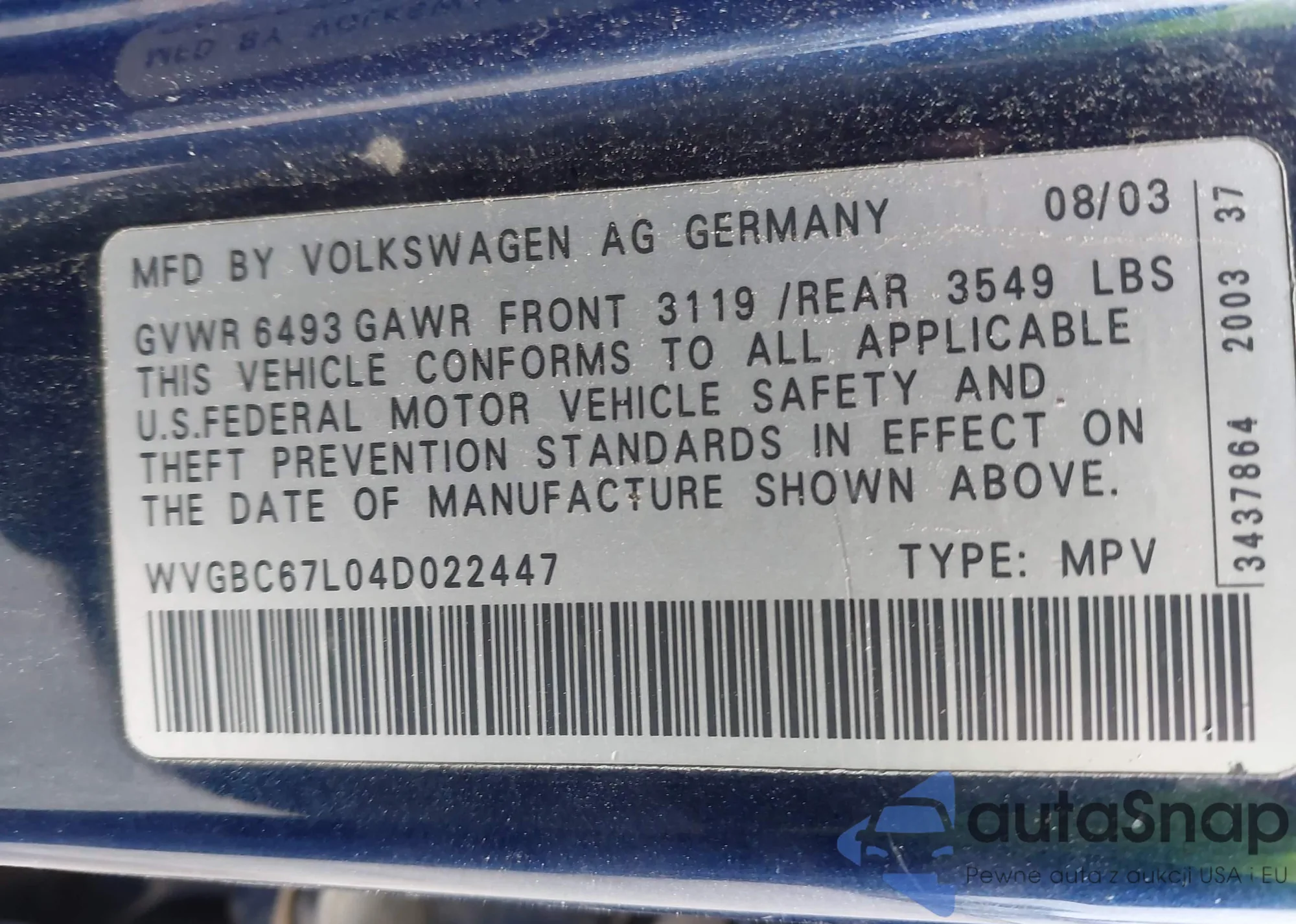• VIN WVGBC67L04D022447